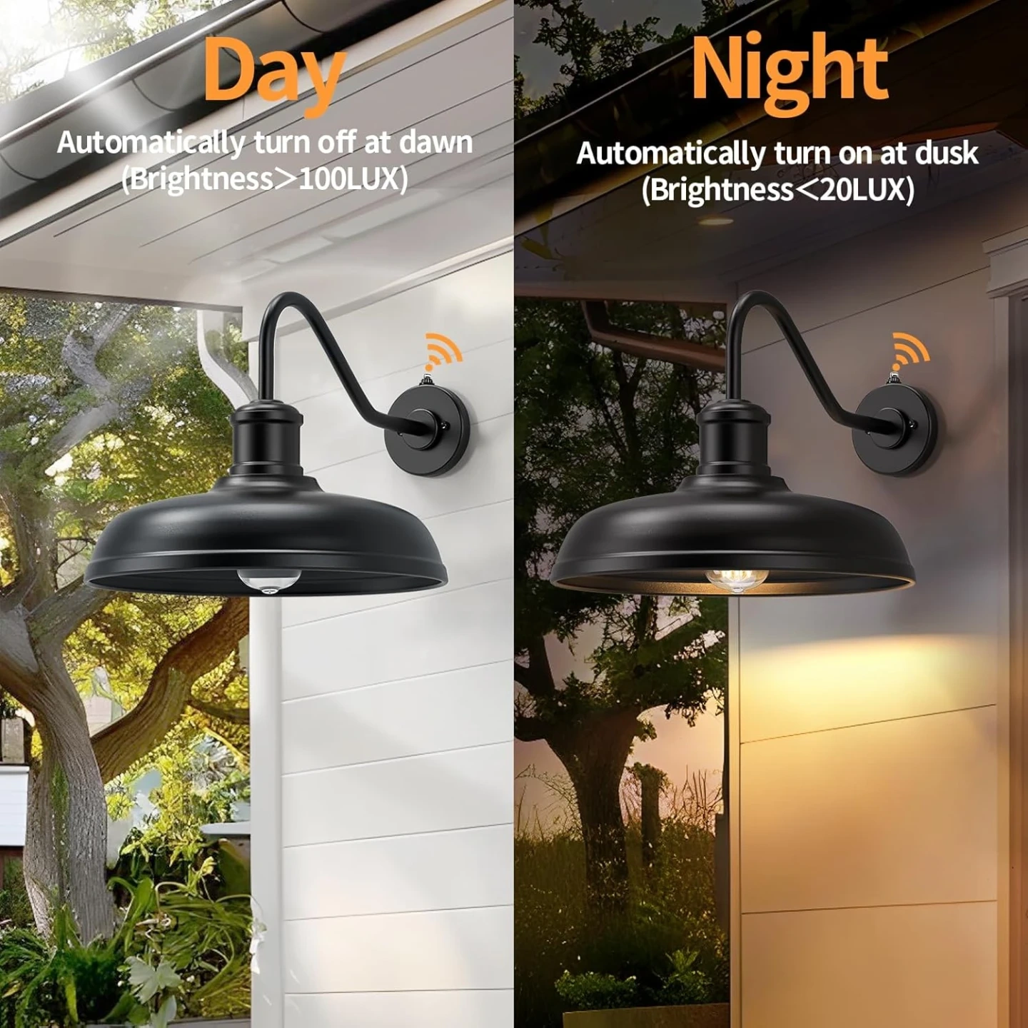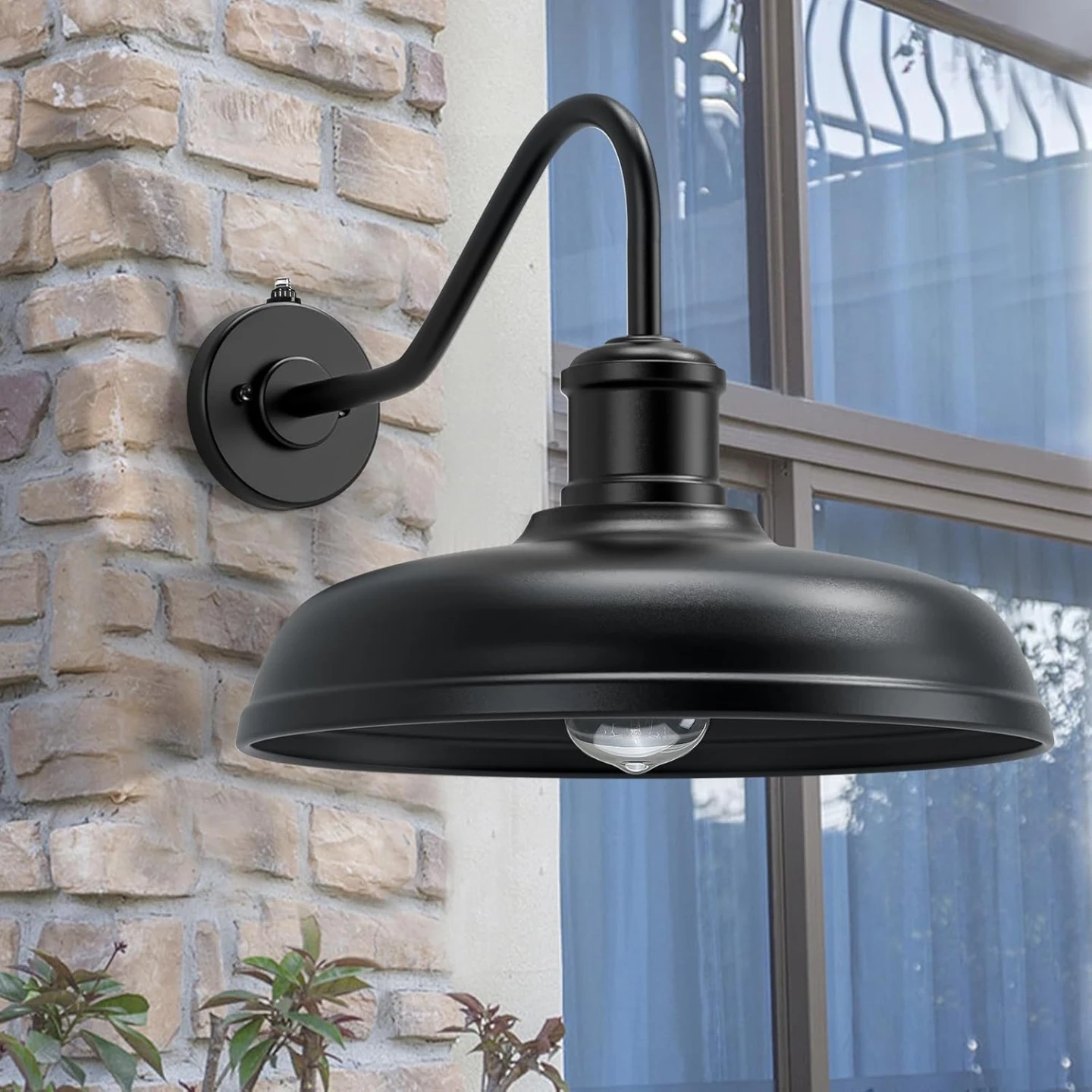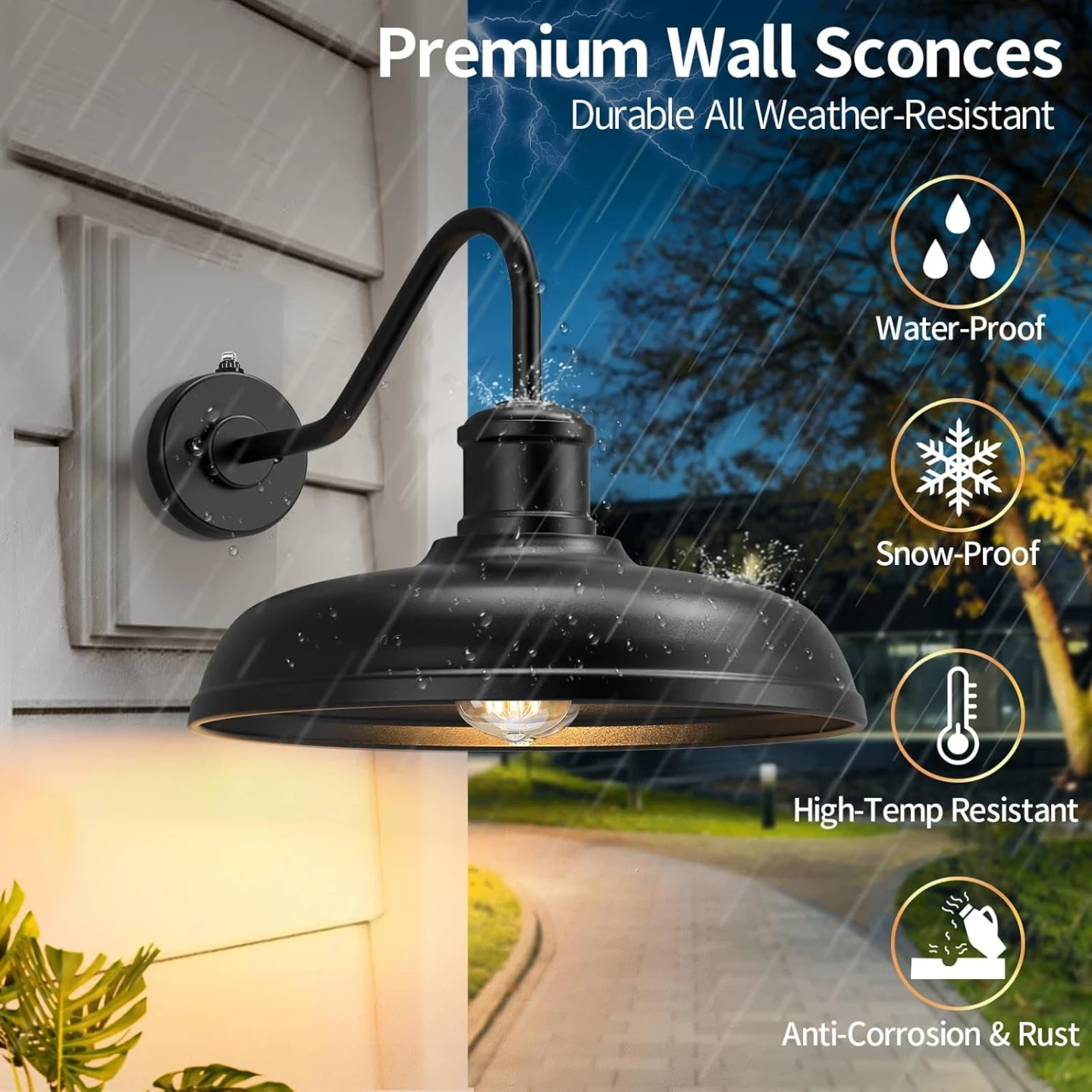 16 Inch Dome Dusk to Dawn Gooseneck Barn Light Outdoor, Large Farmhouse Exterior Light Fixture Wall Mount, Industrial Outdoor Wall Sconce Outside Lantern for House, Porch, Garage, Entryway, Black, Brand New in the Box/Sealed
