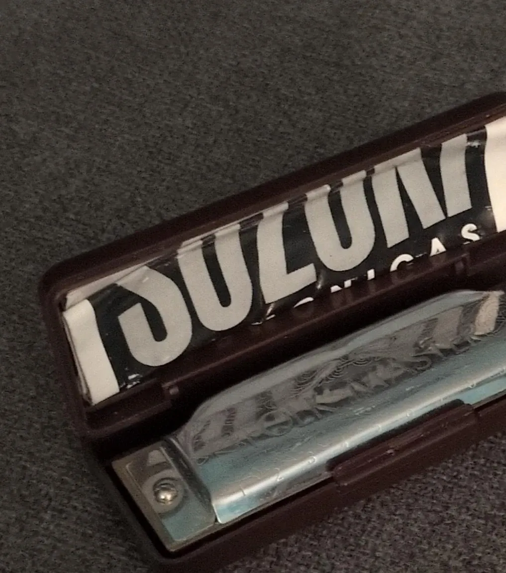 Suzuki harmonica in its original case. Silver-toned metal with engraved design. A classic musical instrument for beginners or enthusiasts!