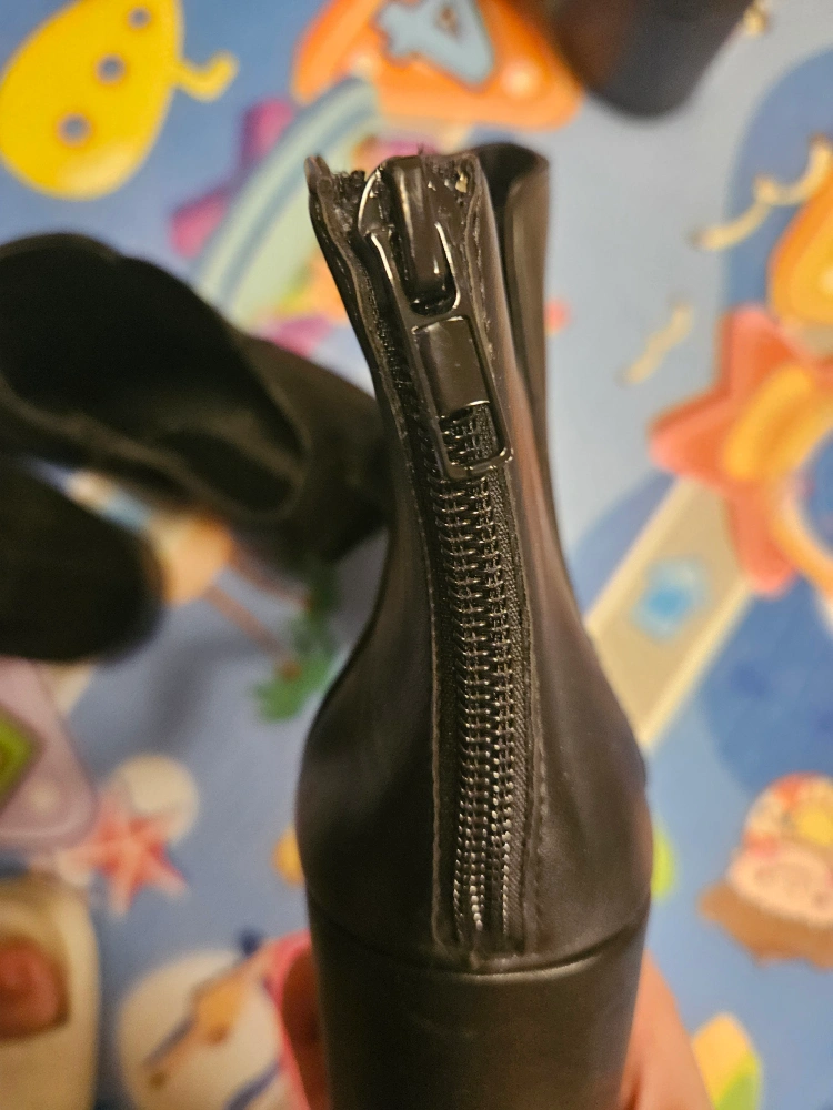 Two pairs of women's black ankle boots. One leather, one suede. Block heels. Zip closure on one pair. Size 8.