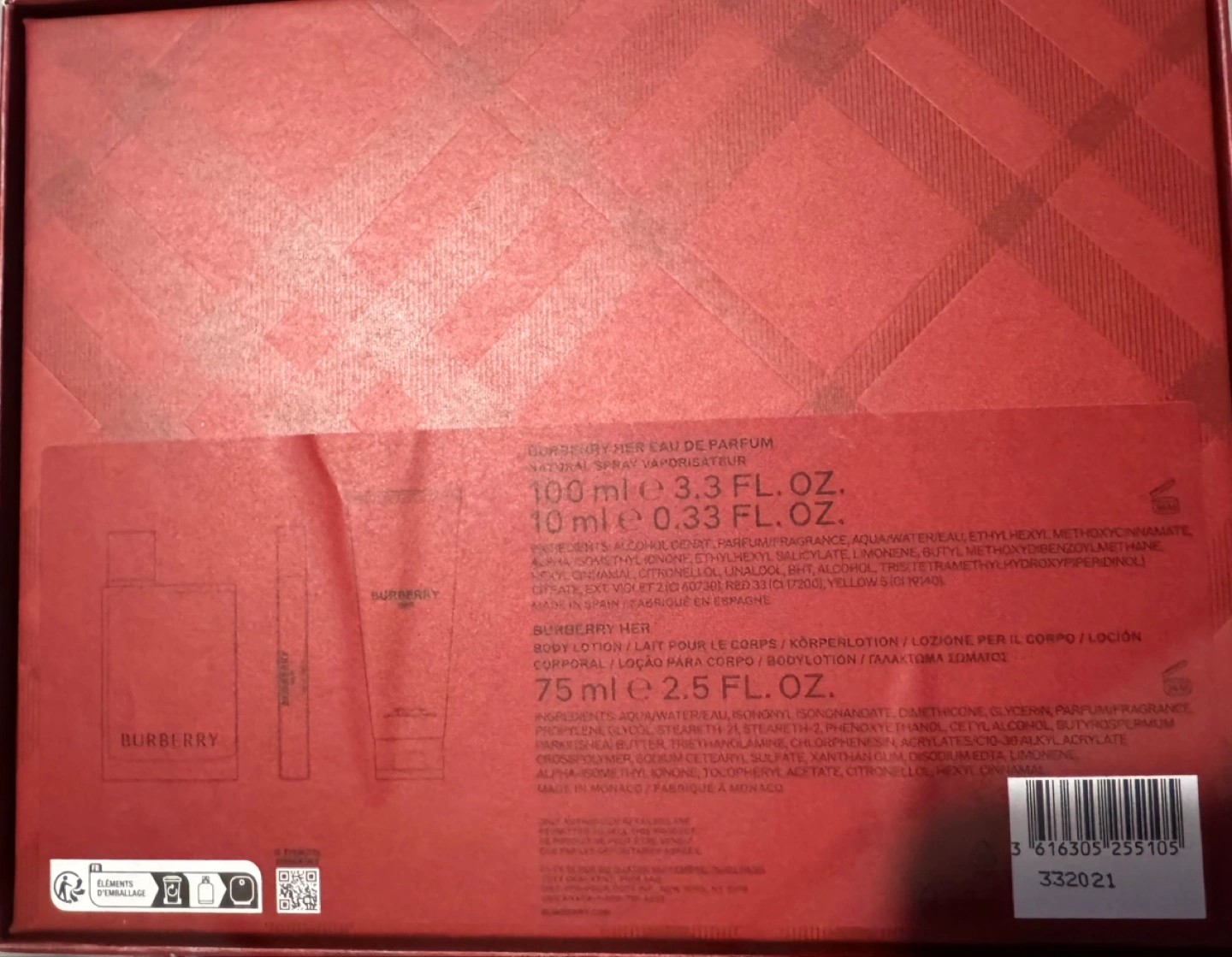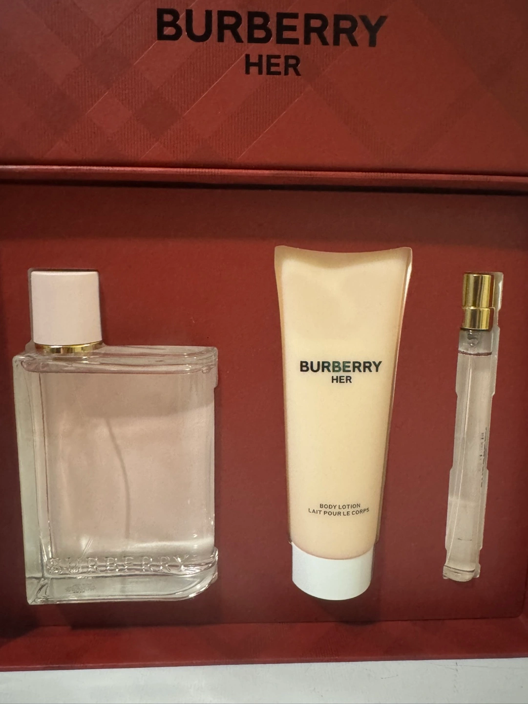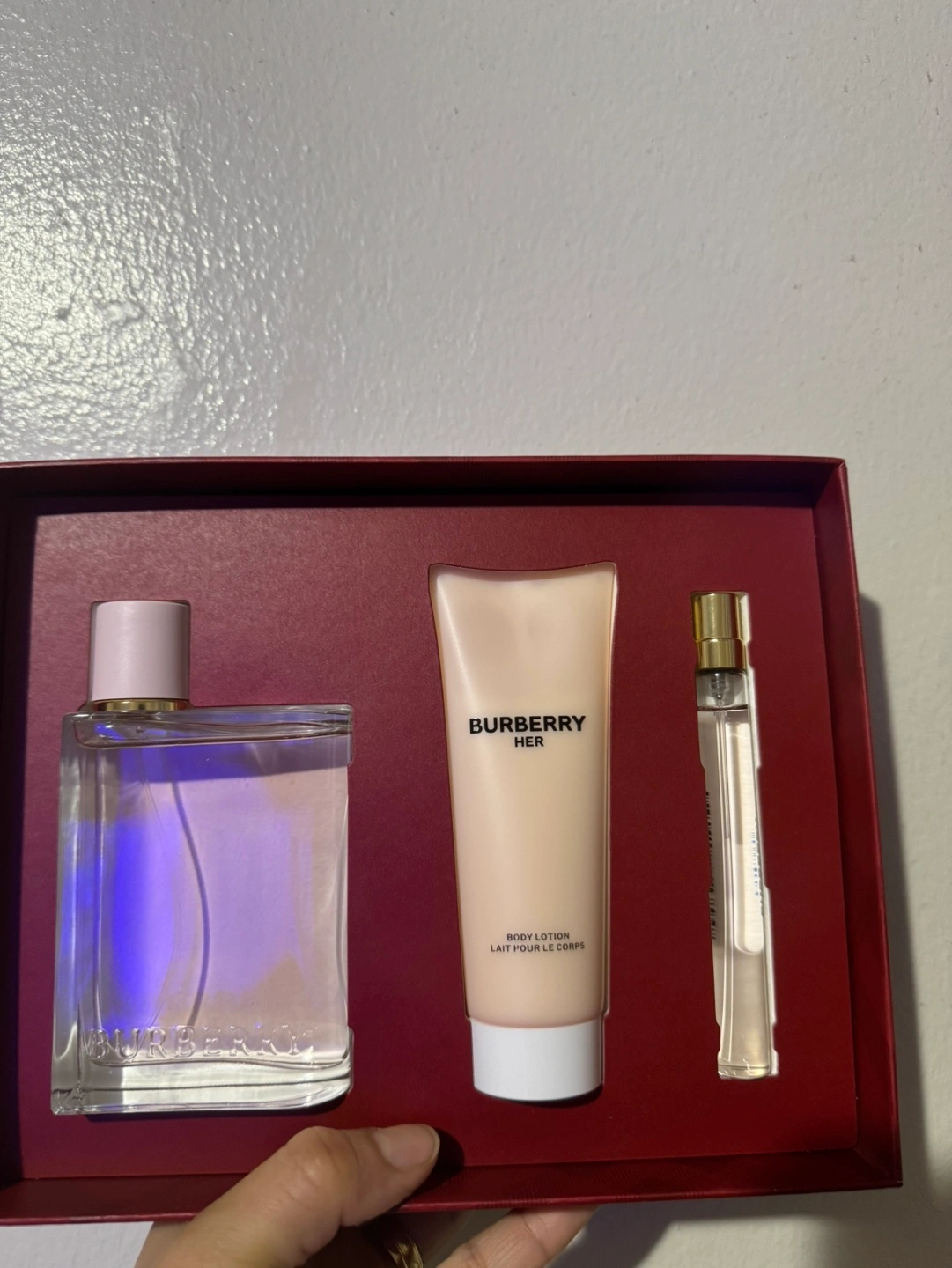 1000+New Burberry Her gift set. Includes Eau de Parfum 100 ml Body Lotion 75 ml and a travel-sized spray. Beautiful red box, perfect for gifting. Cash Pick up near Lawrence and Keele Open to offers
