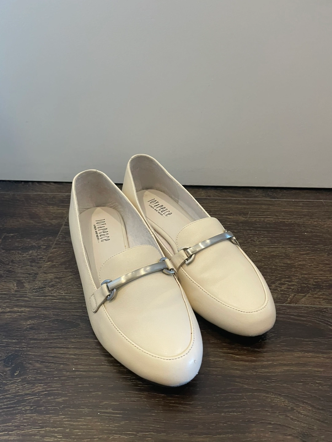 Cream-coloured women's leather loafers. Comes with dust bag.