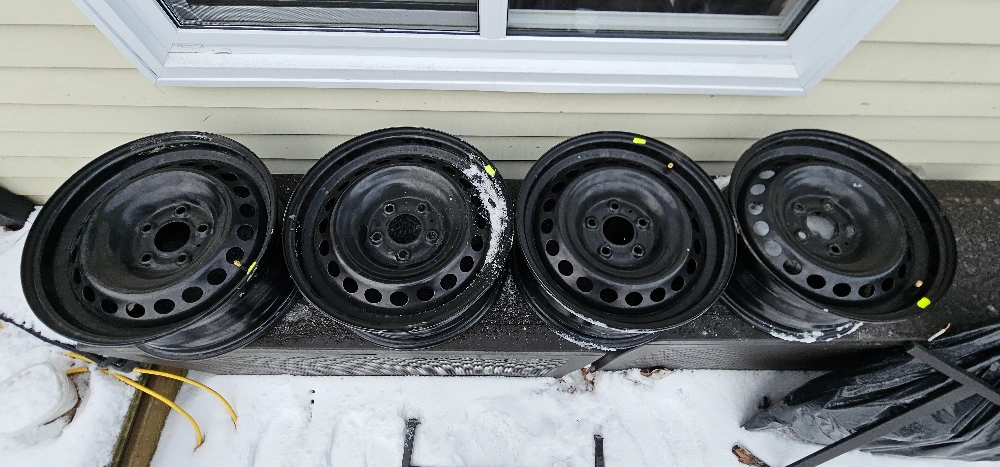 Selling a set of 4 16" steel winter rims off of a Nissan Sentra. Bought from dealership and used for 3 months. Also have 4 x 205/65 16 Continental Viking Contact 7 winter tires with 65% tread left. Good condition. Asking $75
