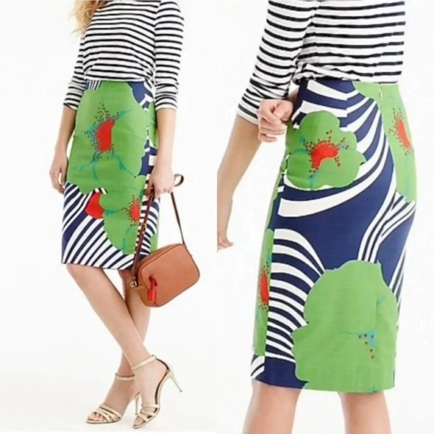 J. Crew Ratti Floral Stripes Pencil Skirt