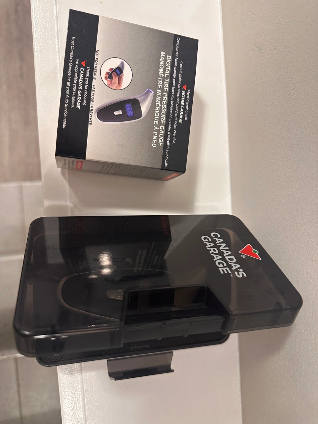 Digital tire pressure gauge. Compact and easy to use. Comes with a carrying case. Great for checking tire pressure quickly and easily. Digital LCD display 5-100 psi range. Suitable for Cars motorcycle and bikes. LED lighted nozzle. Never used in original box.