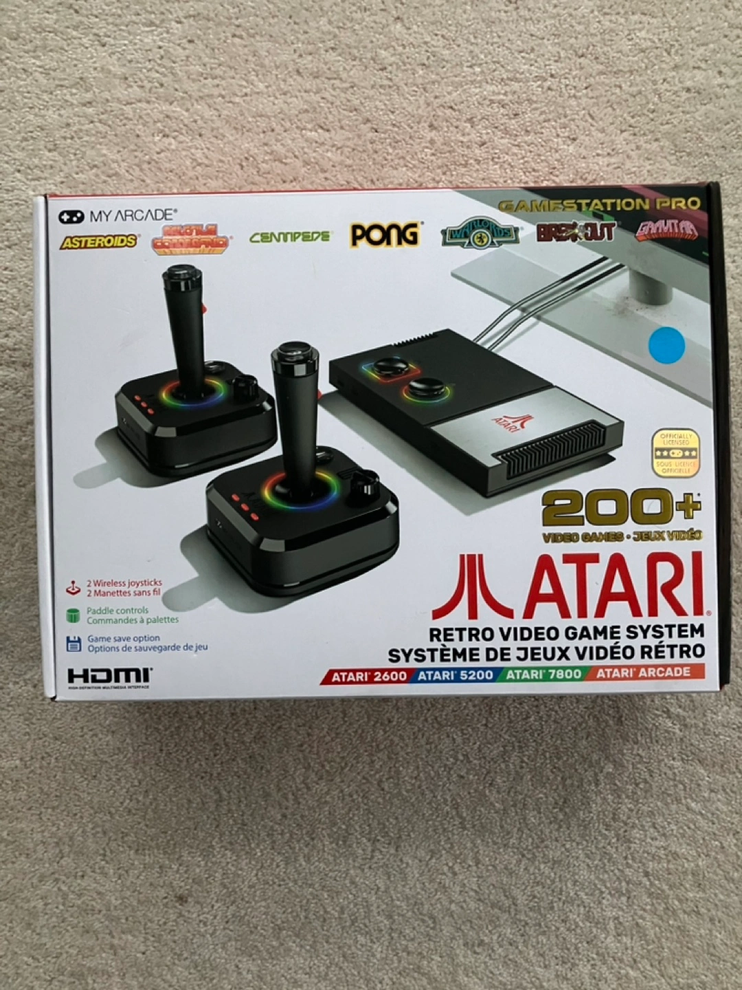 Retro video game system. Includes two wireless joysticks with paddle controls. Features 200+ video games.