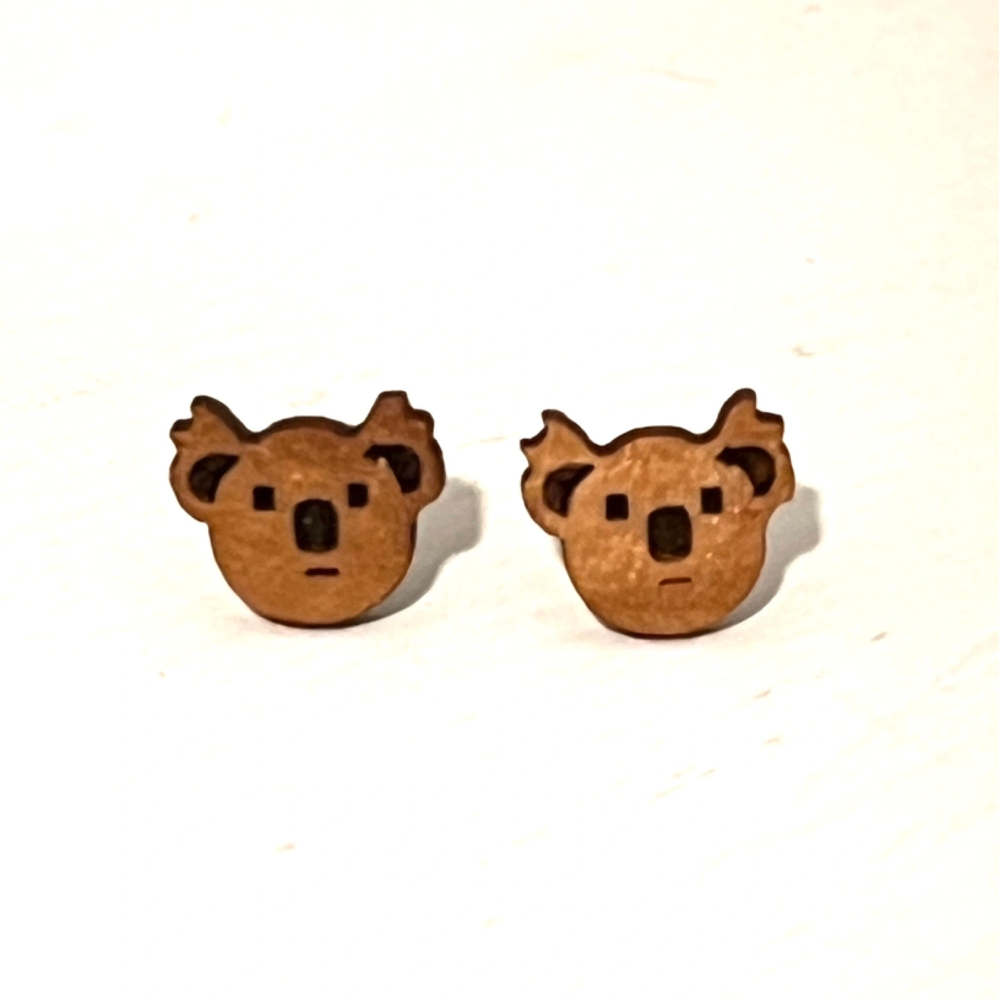 Cute wooden koala bear stud earrings. Lightweight and comfortable. Perfect for everyday wear or a fun addition to your jewellery collection. Unique and charming.