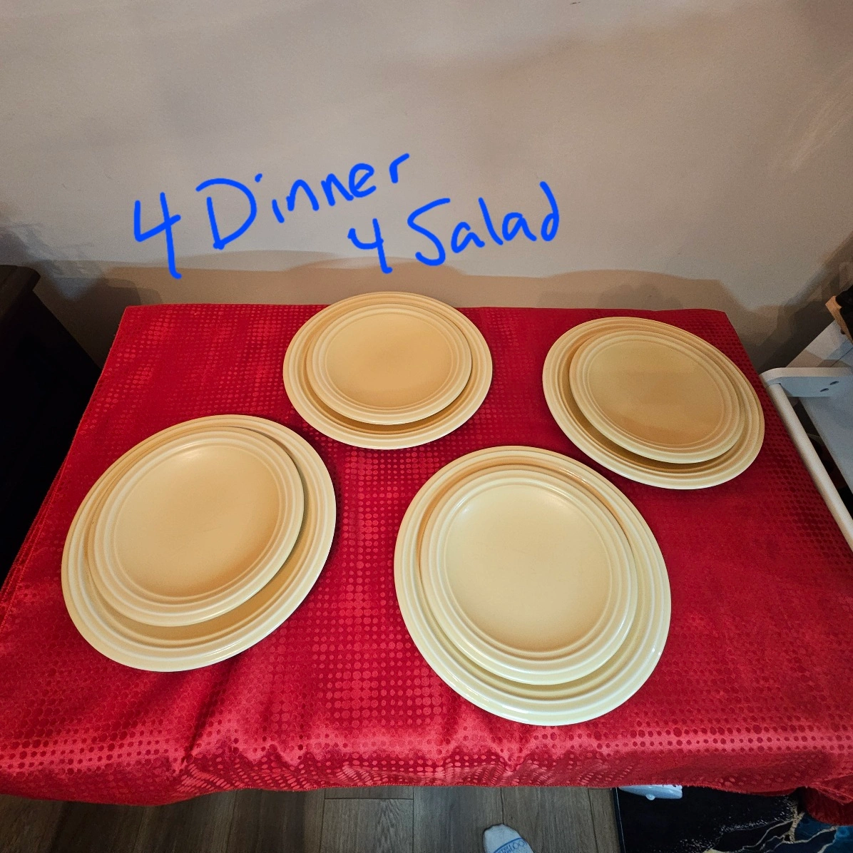Vintage Pfaltzgraff Dinnerware. Set of four dinner plates and four salad plates. Pale yellow colour.
