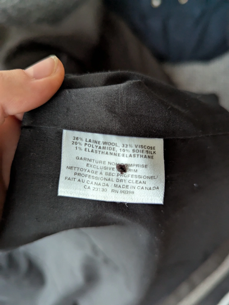 Stylish brown and beige two-tone blazer. Long sleeves, button closure. Made in Canada. Fabric is a wool blend. Gorgeous condition, like new!