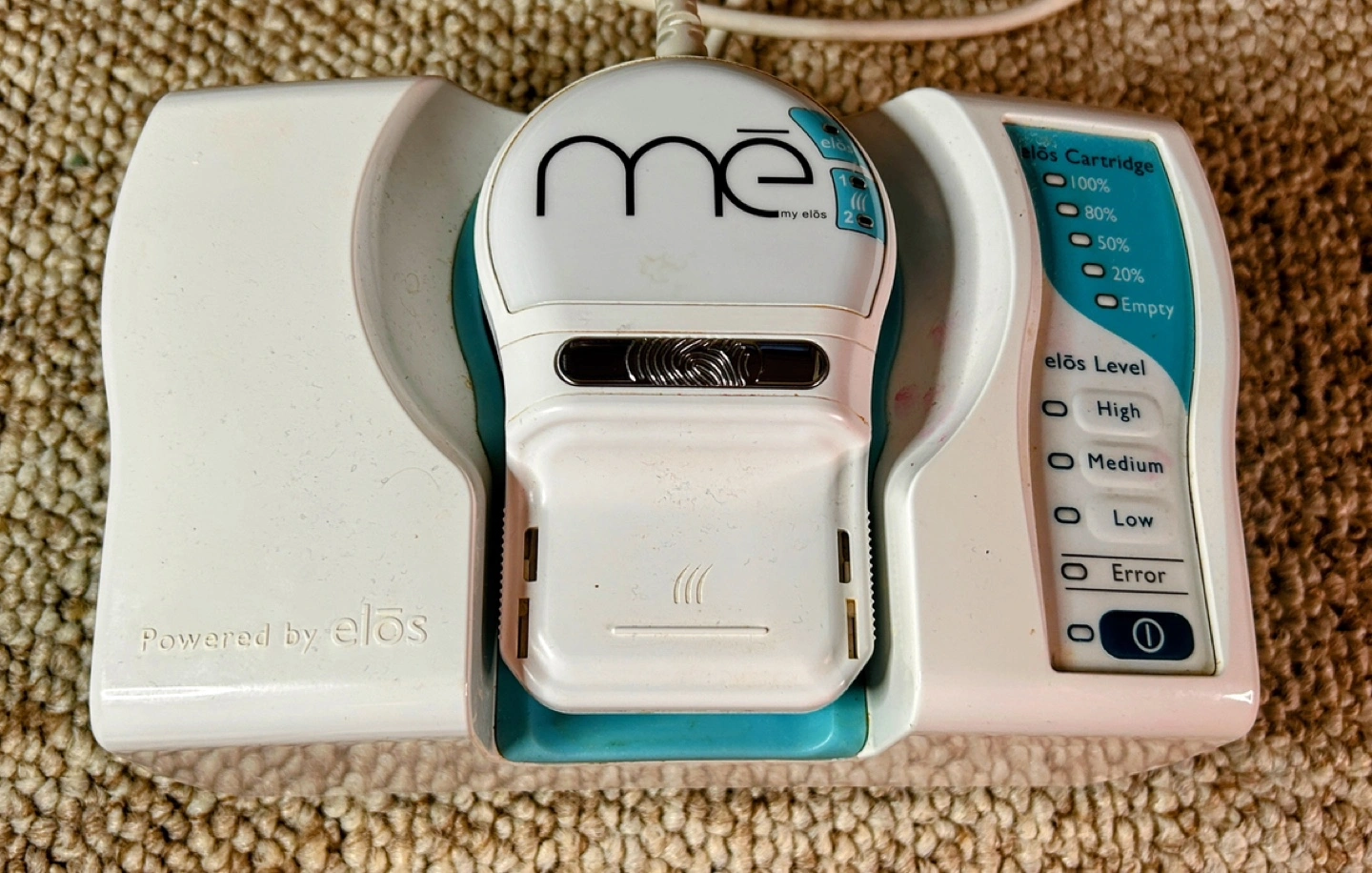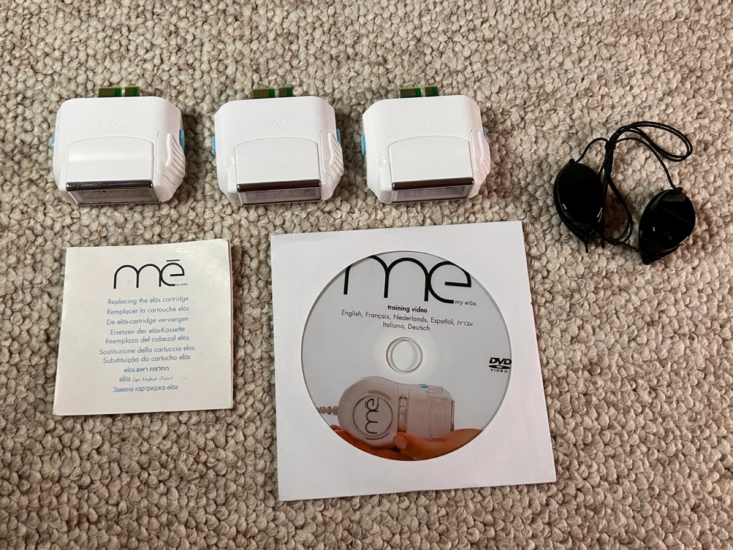 My Elos Me laser IPL hair removal system. Includes extra cartridges and glasses for home laser treatment. Keep body hair away for months. Very effective and easy to use.