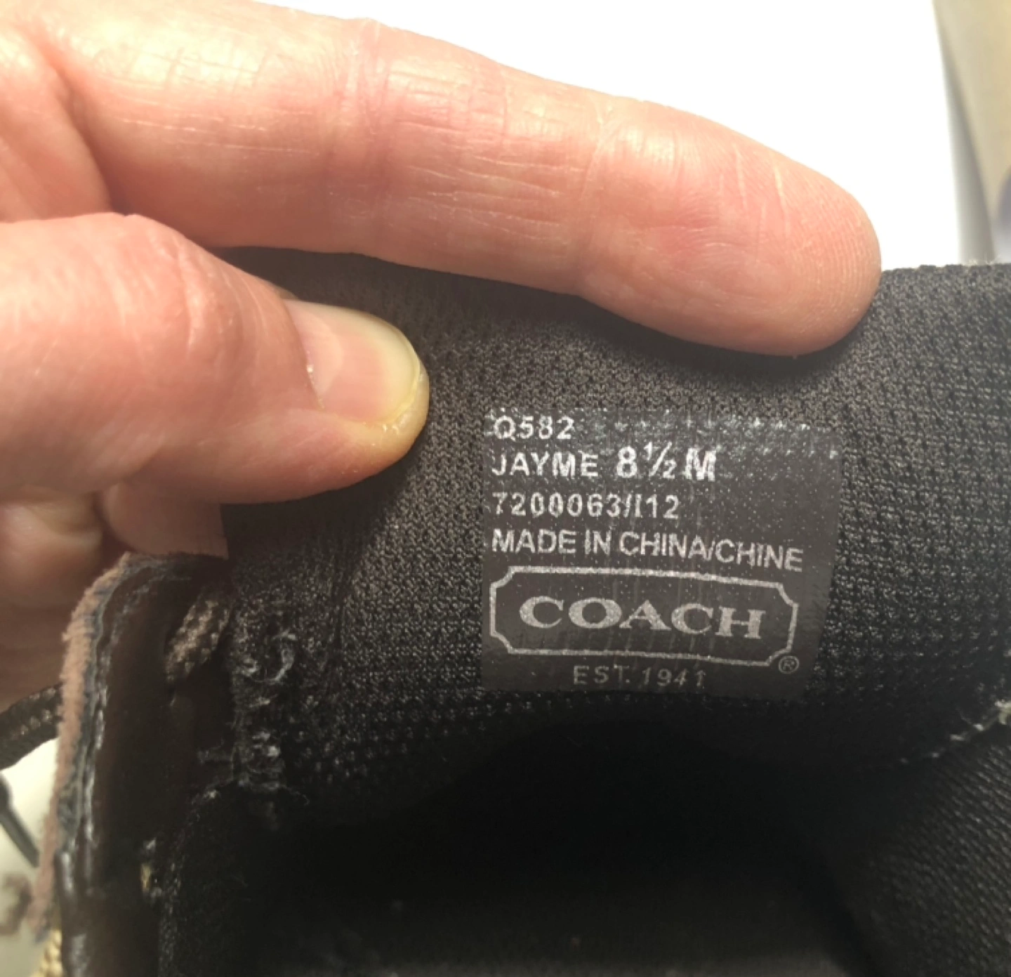 Brown and gold Coach sneakers/runners in brown/gold/chestnut colorway. Lace-up closure, rubber non-slip sole. Signature C pattern fabric.