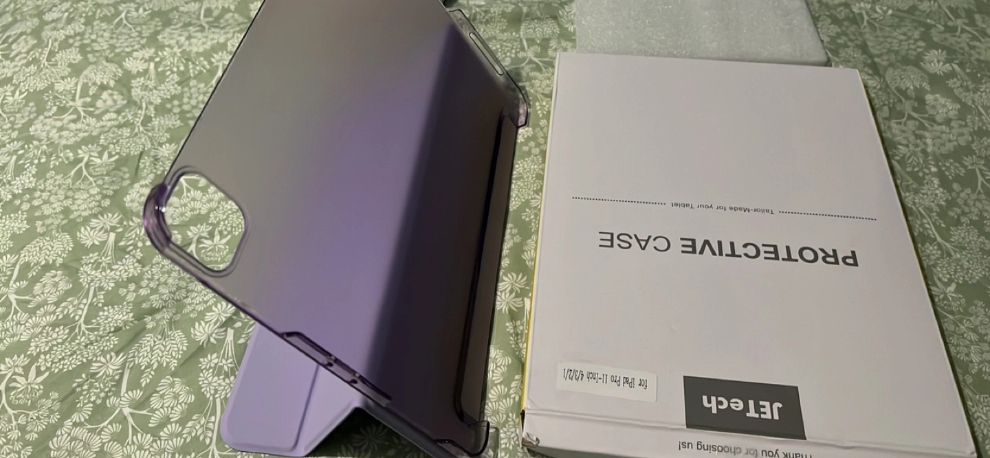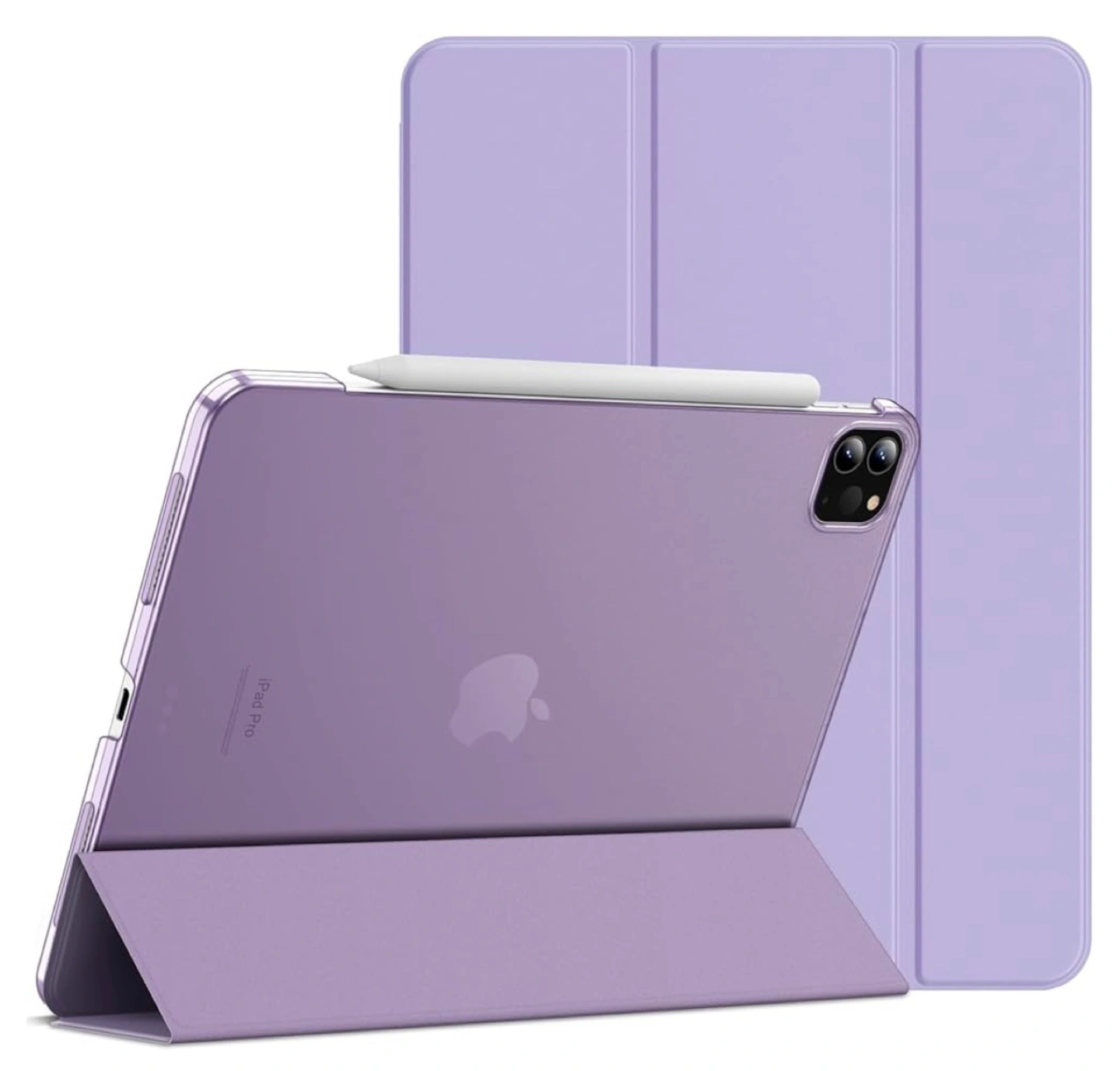 Protective case for tablet. Light purple colour. Features auto sleep/wake function. Foldable stand design. Made of durable material. iPad Pro 11 inch 2018, 20, 21, 2022 model compatible case cover.