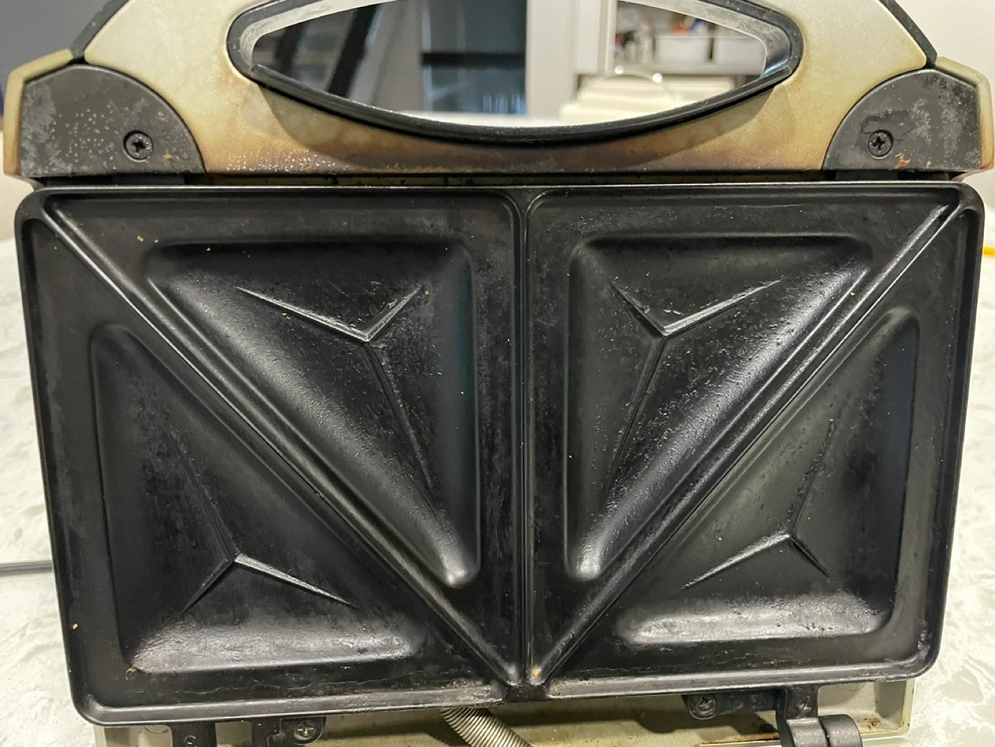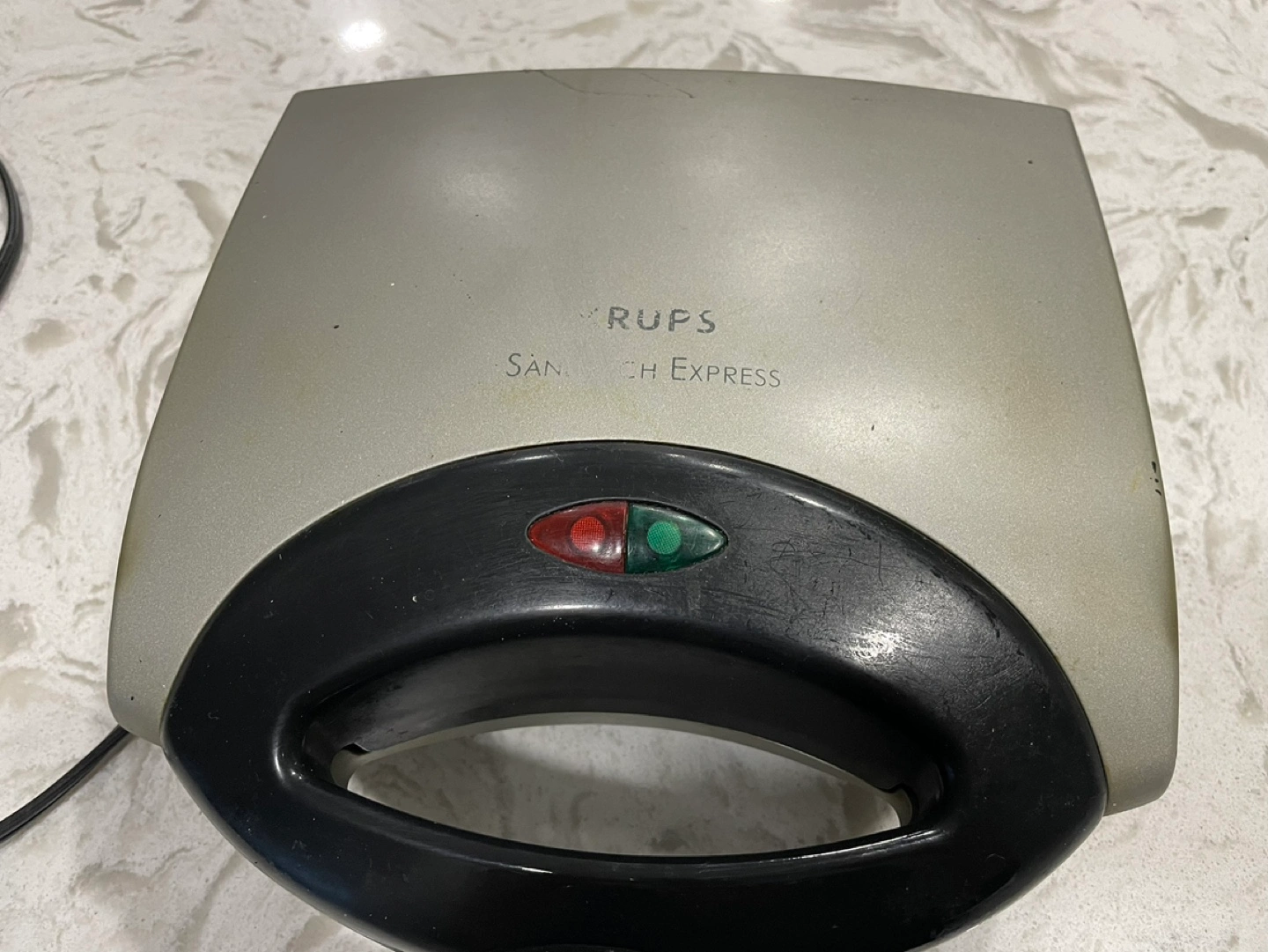 Used Krups Sandwich Express. Makes two triangle sandwiches. Light indicators. The wire is loose sometimes it’s work or not