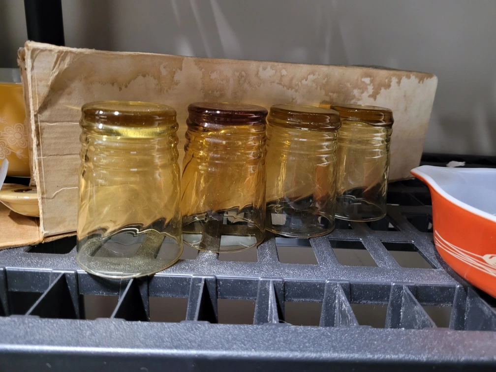 5 vintage-style amber glass tumblers. Slightly textured glass. Great for juice or water. Collectible. useable. Must pickup. Please. no etransfer or long holds. this is a cash price. bring cash. This is in storage and I will meet you there. I can access the building during 8 to 430 Monday to Friday. No one is there outside of those times.