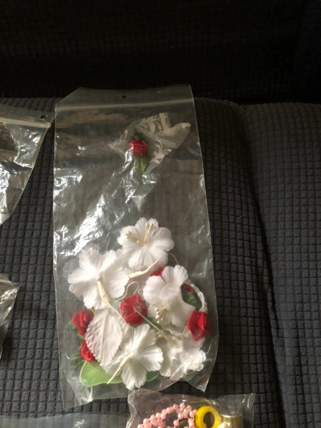 Many items are packaged individually in ziploc bags.