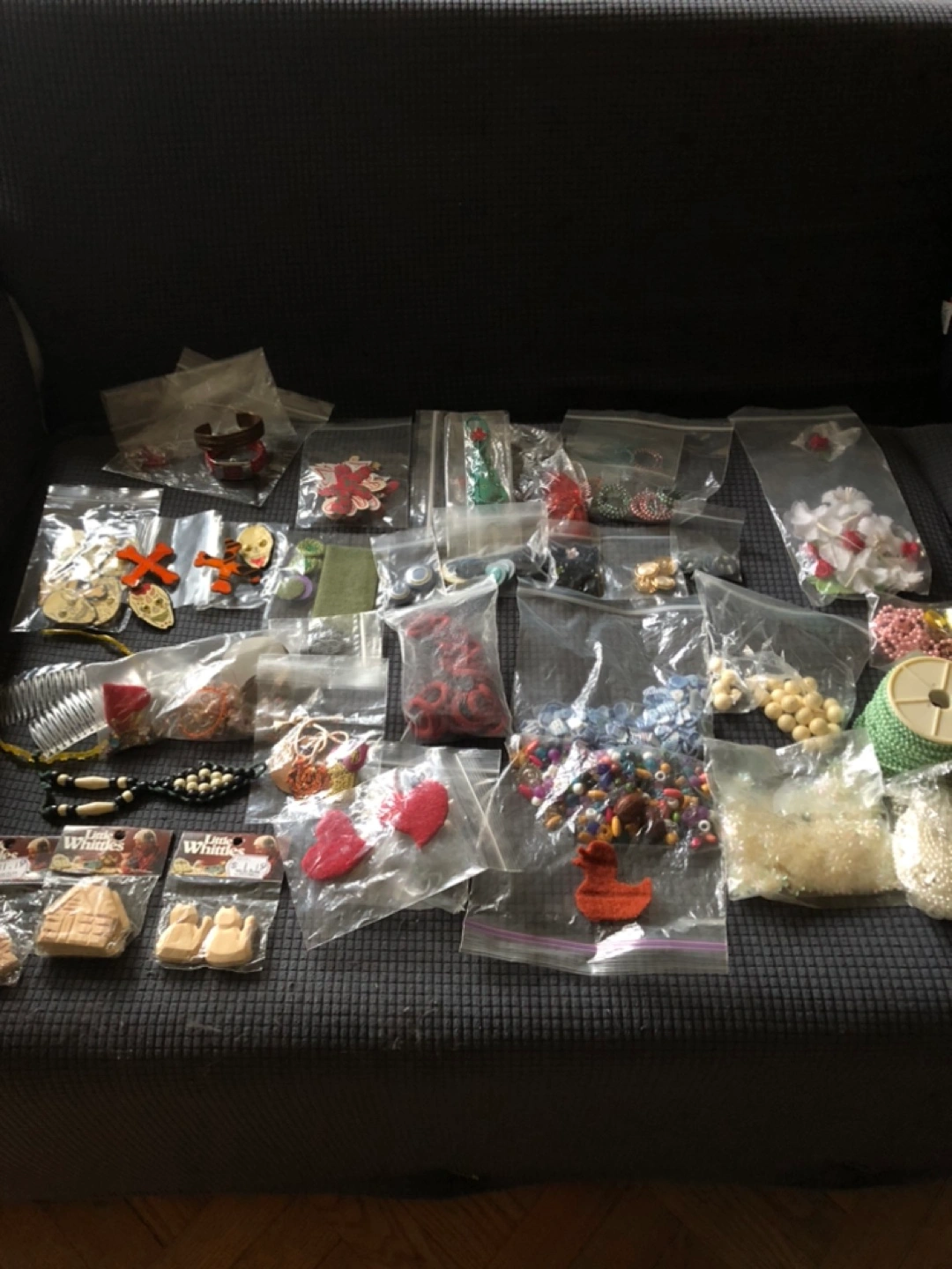 Includes various beads, buttons, pendants, findings, and more.