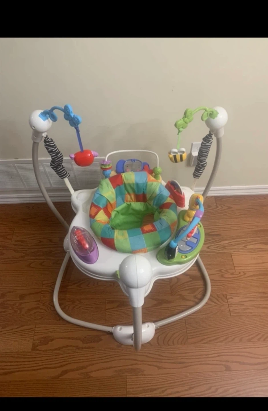 * Animal-themed infant activity center that rewards your baby’s every jump with fun, toys have fun feel and lights
