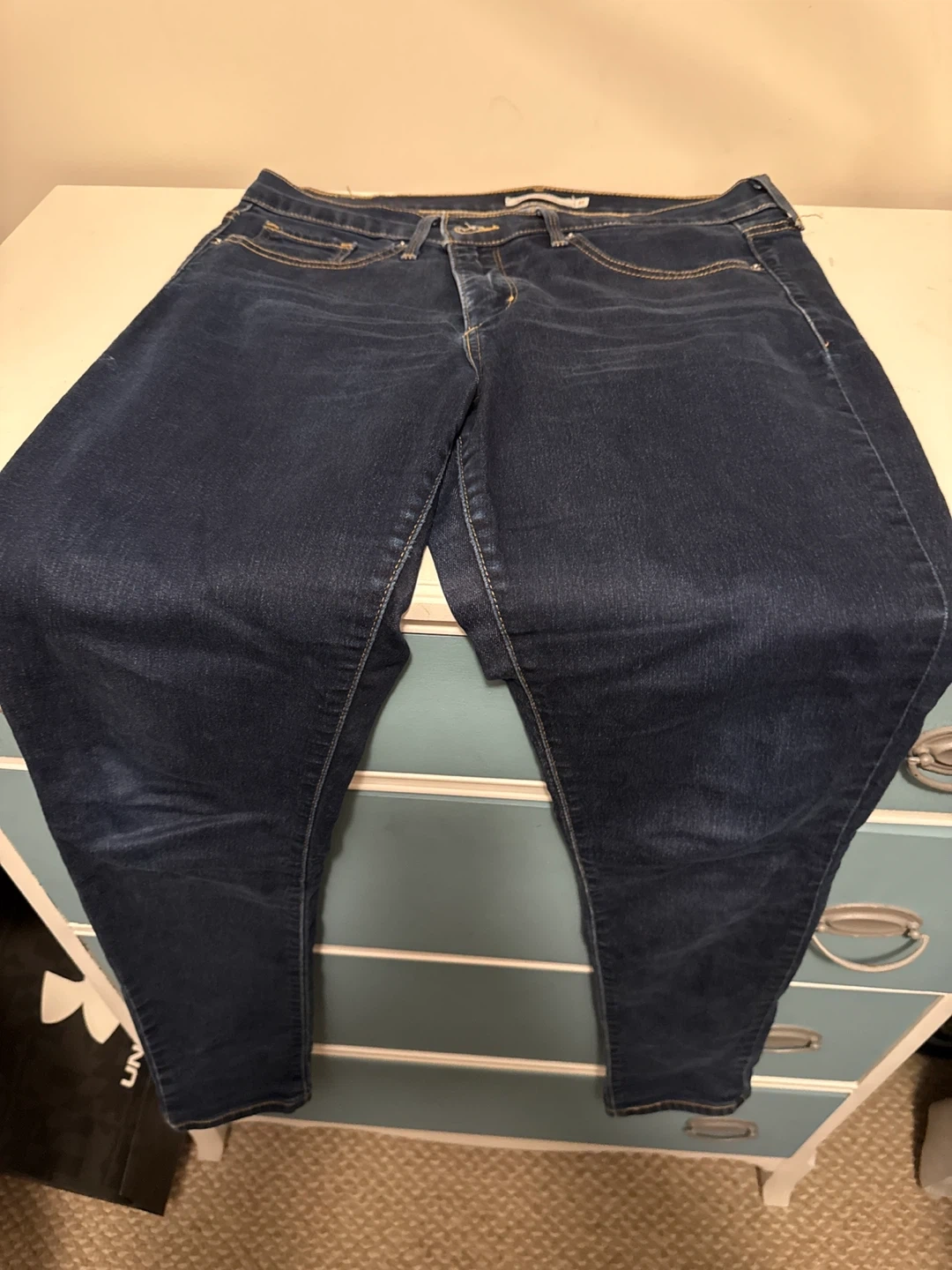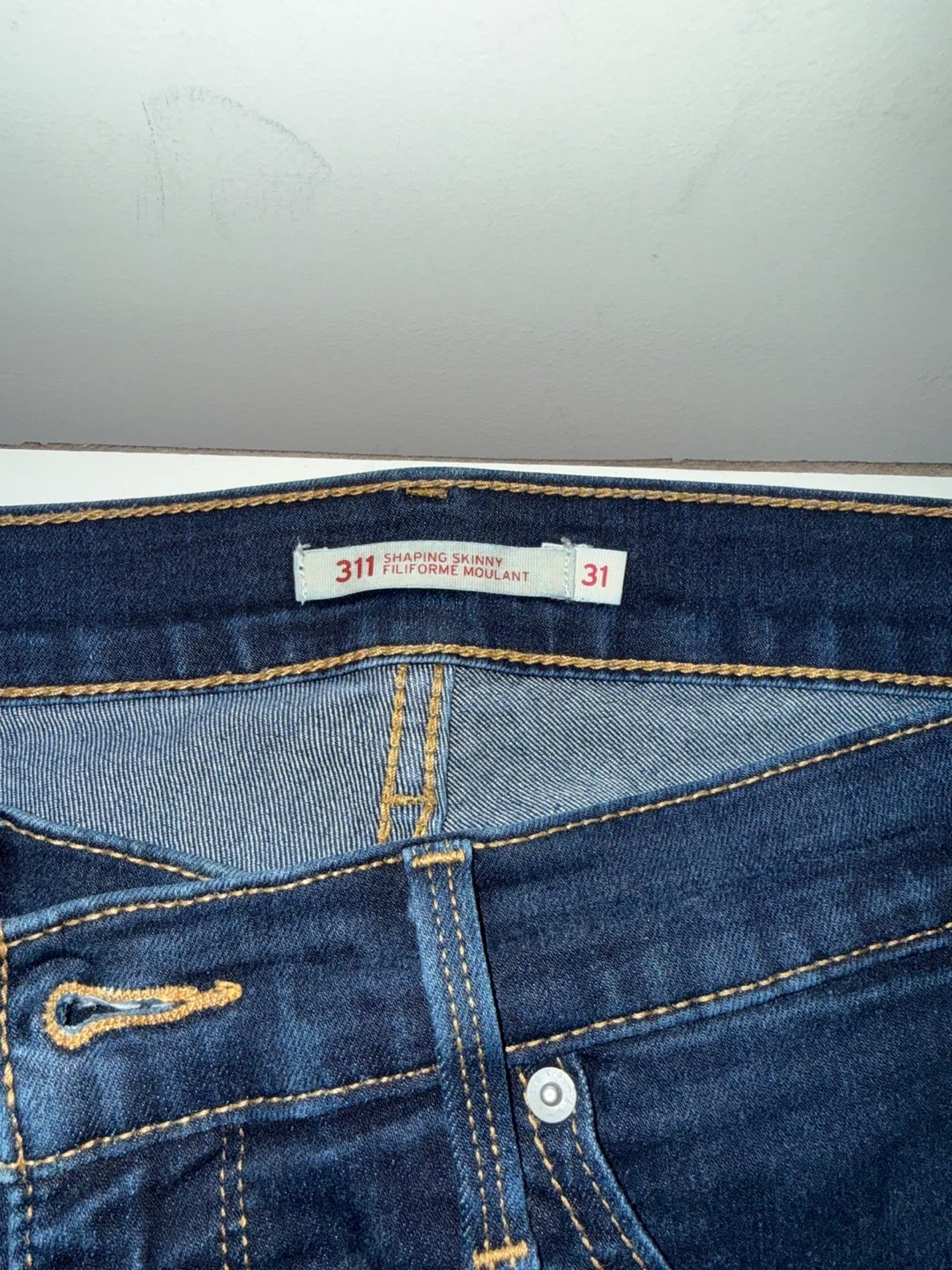 Levi's 311 Shaping Skinny jeans in a dark wash. Women's size 31. These jeans offer a flattering fit. They're made from a comfortable denim blend.