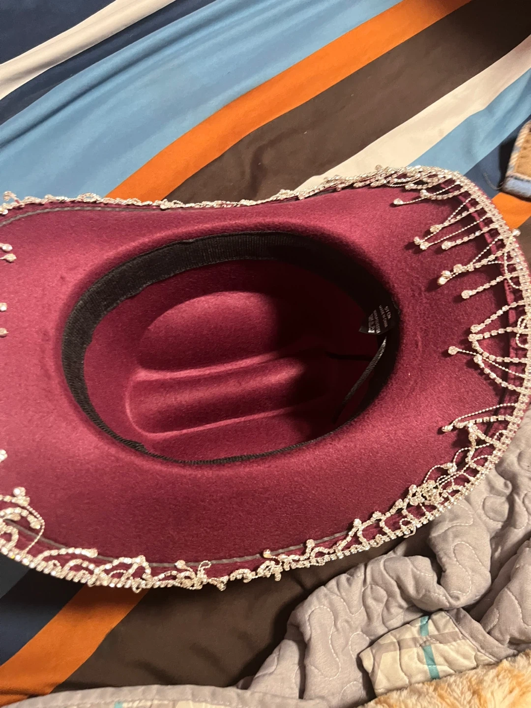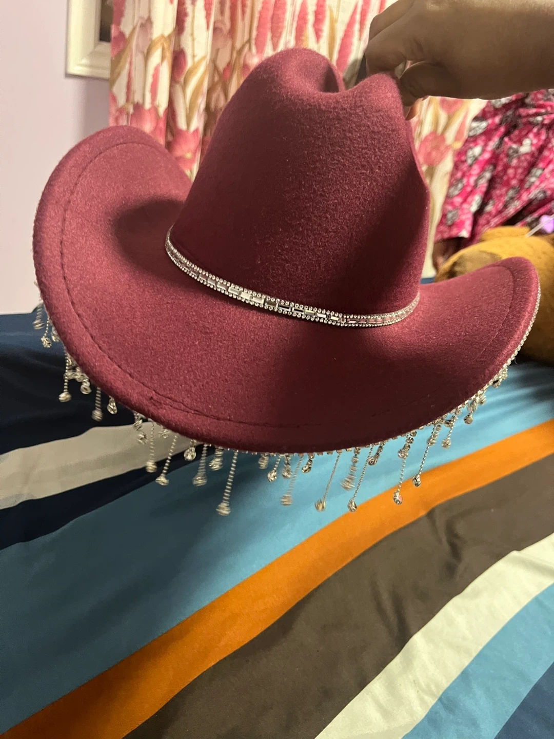 Maroon Cowboy Hat with Rhinestone Fringe