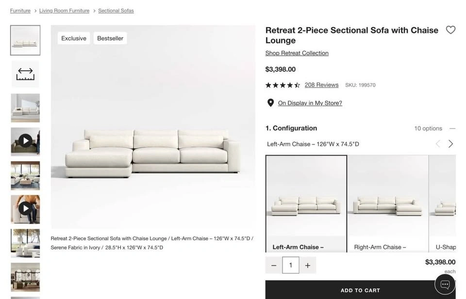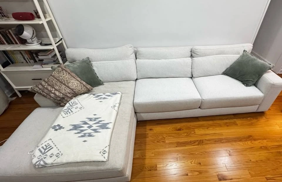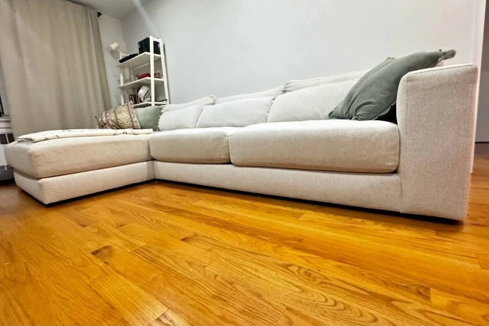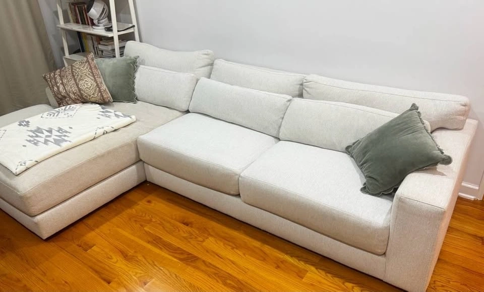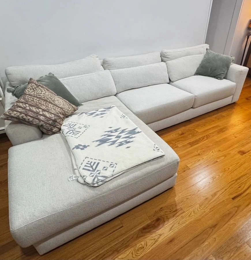 Beautiful Crate & Barrel Retreat 2-piece sectional sofa with chaise. Deep, low-profile lounge style – very comfortable. 2-piece configuration with chaise lounge (see photos for orientation). High quality Crate & Barrel construction and fabric. Current retail price around $3,398 + tax depending on fabric. In good condition – used just 6 months. Non-smoking. Pickup only.