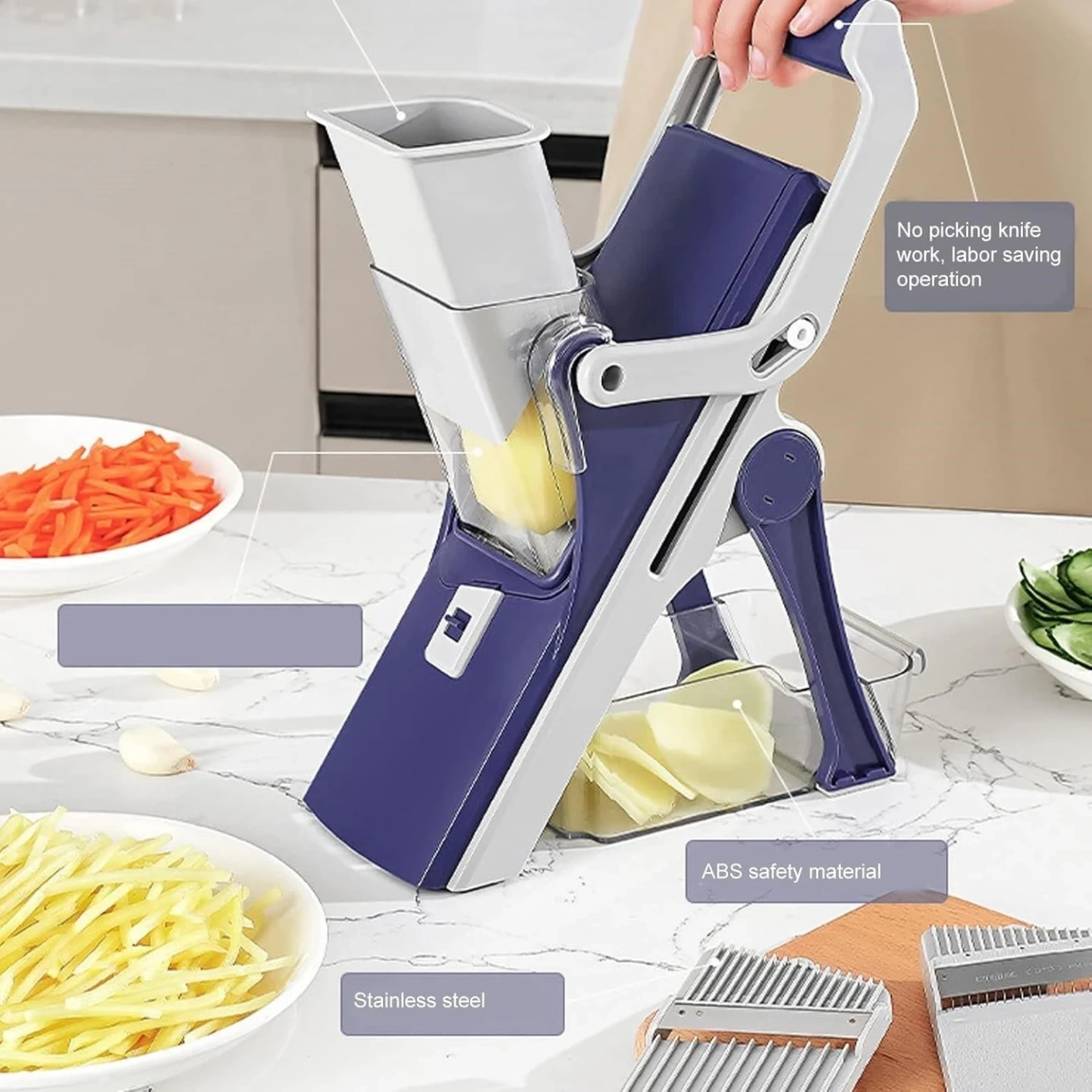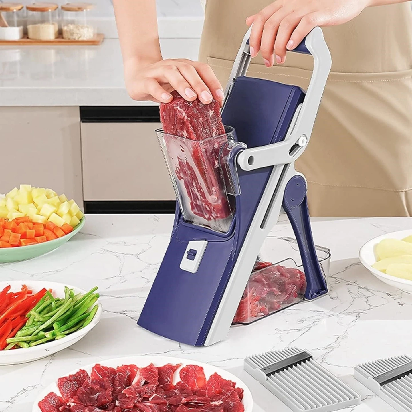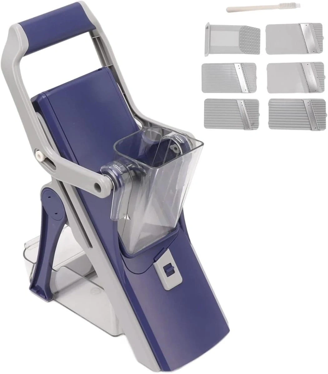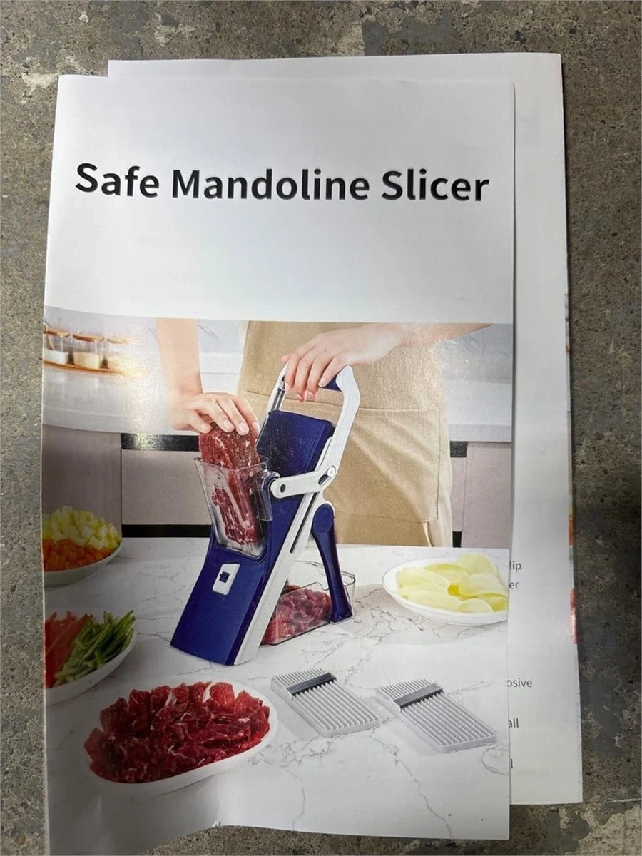 This mandoline slicer is made with stainless steel blades and ABS safety material. It's removable and the whole body can be cleaned by rinsing. This slicer is great for quickly preparing vegetables and meats for meals. It's labour-saving for your kitchen prep!