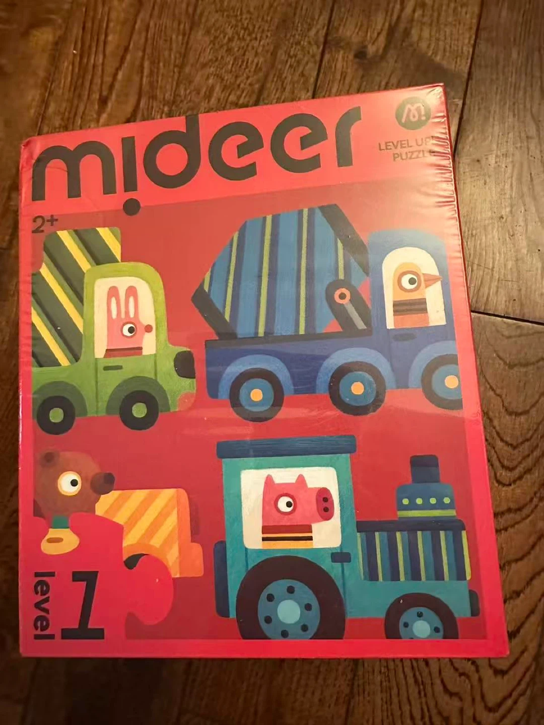 This Mideer Level Up! Puzzles set comes with 8 different puzzles featuring vehicles. It's designed for ages 2 and up. Each puzzle aids in developing artistic creativity and fine motor skills.