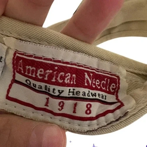 Classic tan cap from American Needle. Ideal for everyday style. Visor with Velcro adjustable back. Embroidered logo on the front. 100% cotton. Excellent condition. A bit of wear overall as this is a vintage piece. On the smaller side, would fit a small adult head most likely.