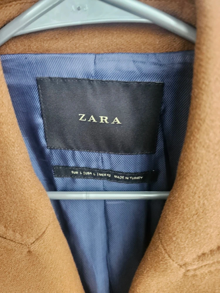A stylish ZARA men's double-breasted coat in a rich brown colour. It's made from a wool blend and features a classic lapel design. This coat is size L but fits like an M. Made in Turkey. Pick up Metrotown. Coat is in perfect condition