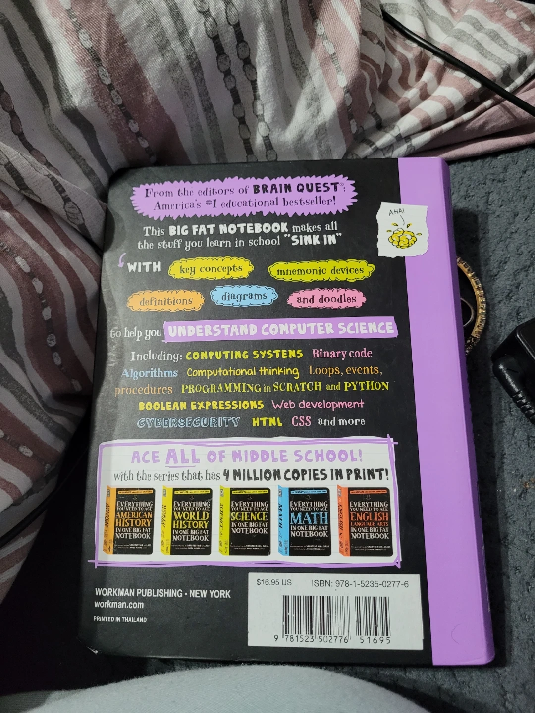 This Big Fat Notebook covers computer science and coding topics for middle schoolers. This book helps you understand programming in Scratch and Python, web development, and cybersecurity.