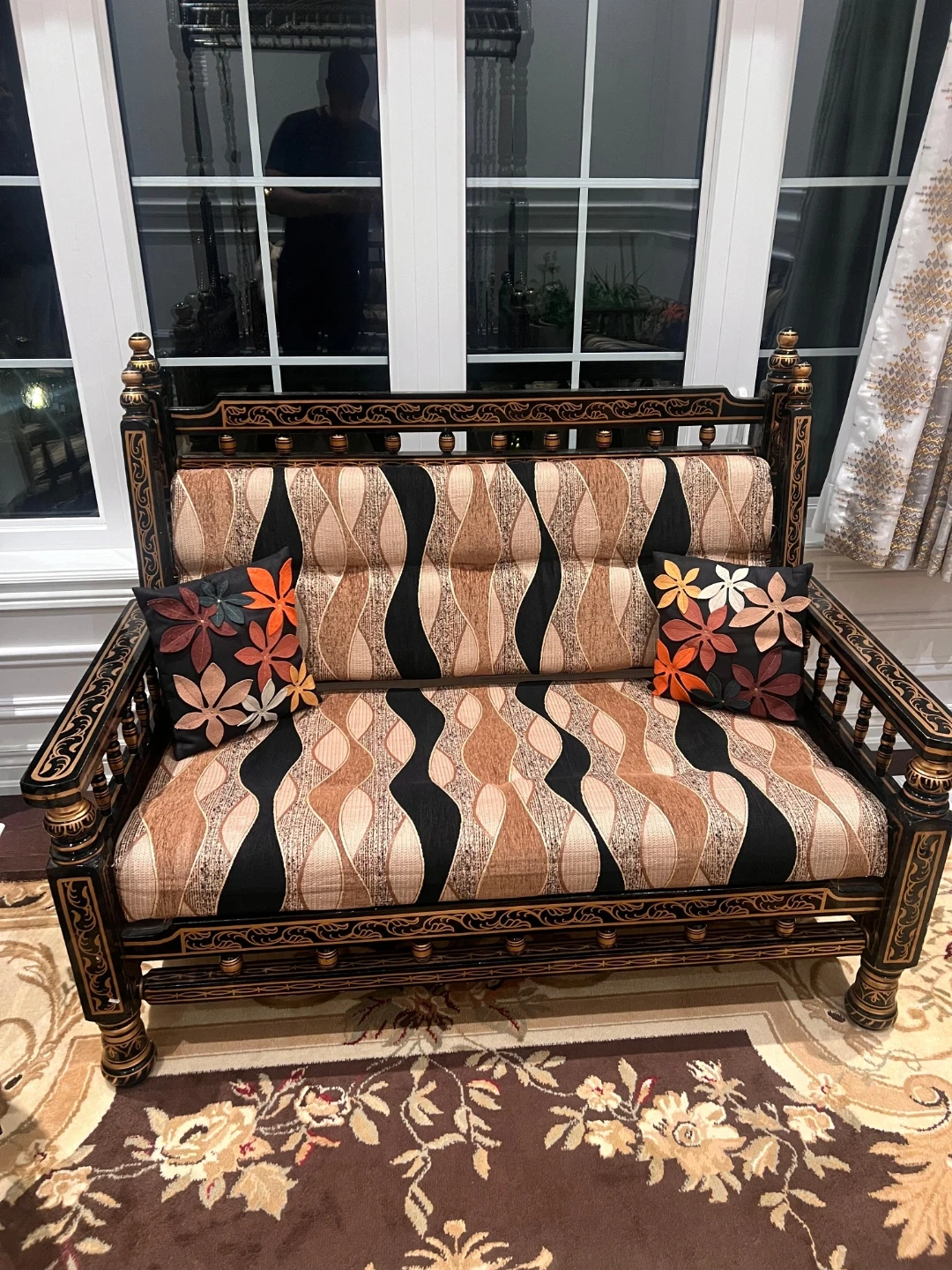 Vintage Black and Gold Wood Sofa Set with Coffee Table