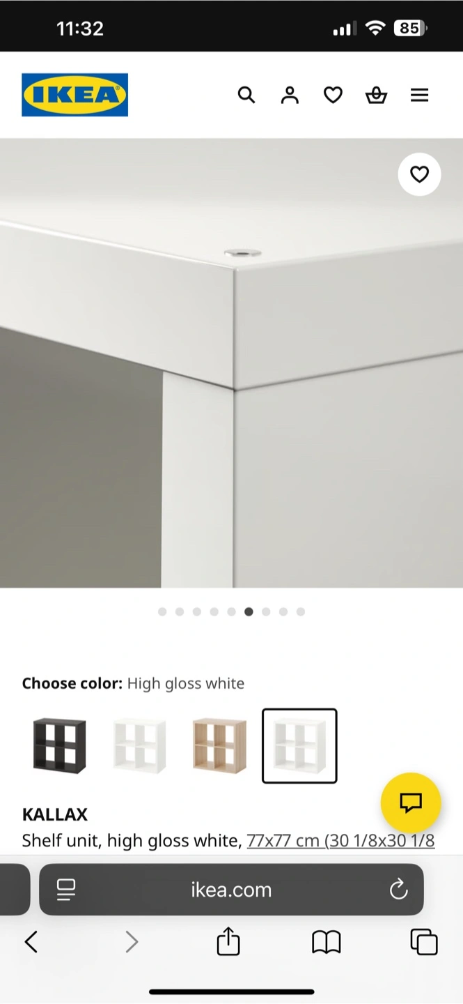 Selling an IKEA Kallax shelf unit in white. It's ready to organize your space! The unit has a 4-cube design, perfect for storing books, decor, or anything else you need to keep tidy. Dimensions are 77x77 cm (30 1/8x30 1/8 ")