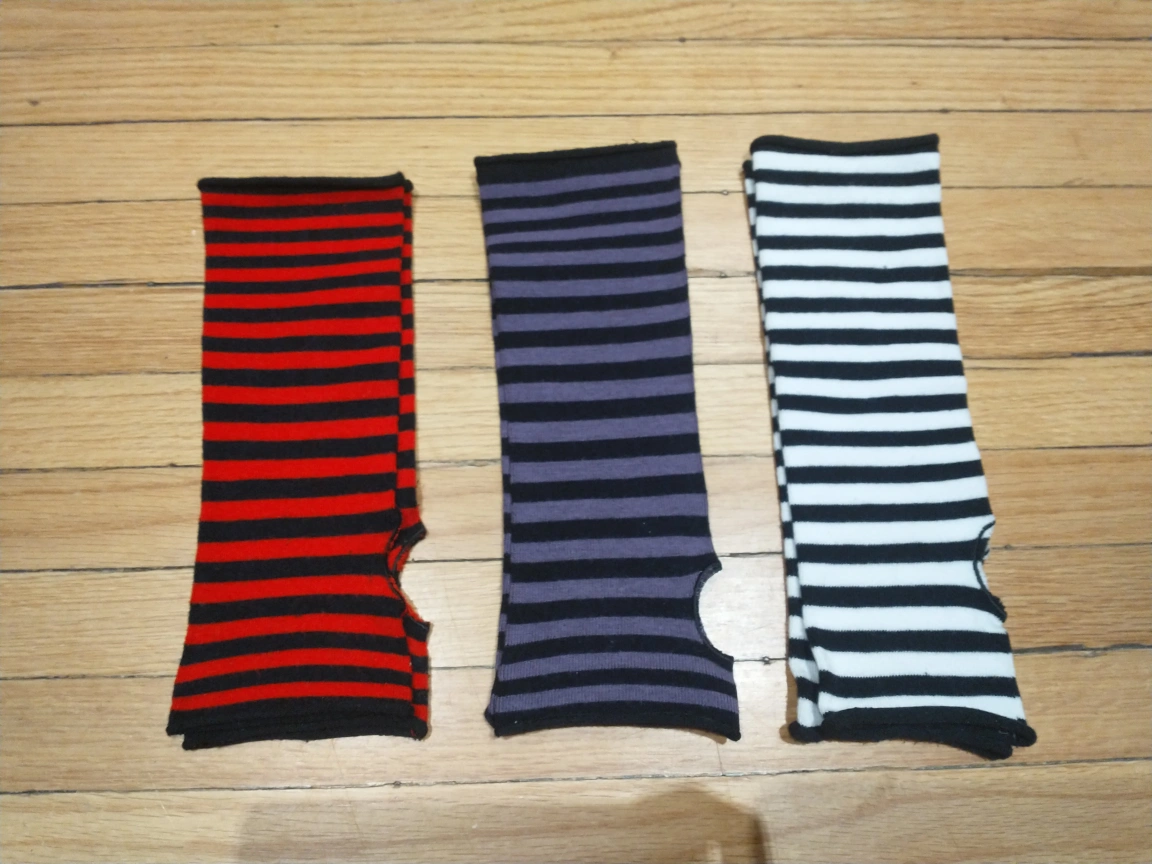524Three pairs of striped arm warmers Never worn $3 each or $6 for all Smoke free home Cash payment please
