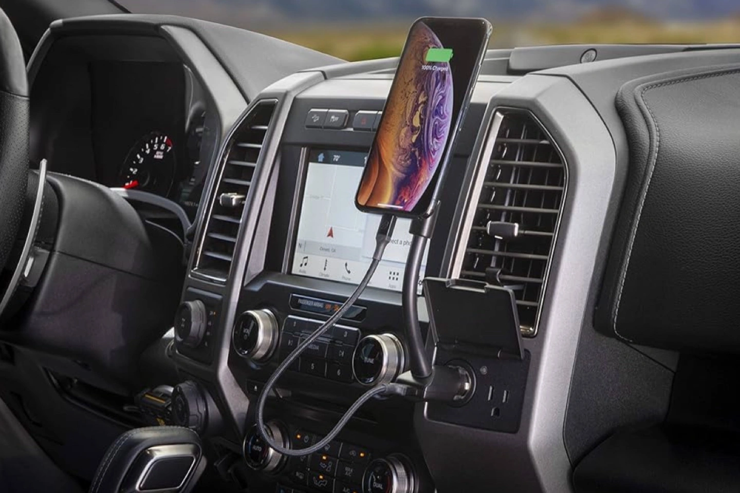 Universal Magnetic Car Phone Holder, Cigarette Lighter Mount with USB Charger, Easy Magnet Mounting for iPhone, iPad, Smartphones, Tablets, and More… Flexible gooseneck design, 360 degree rotation. Magnetic phone holder with USB port. Plugs into car's cigarette lighter.