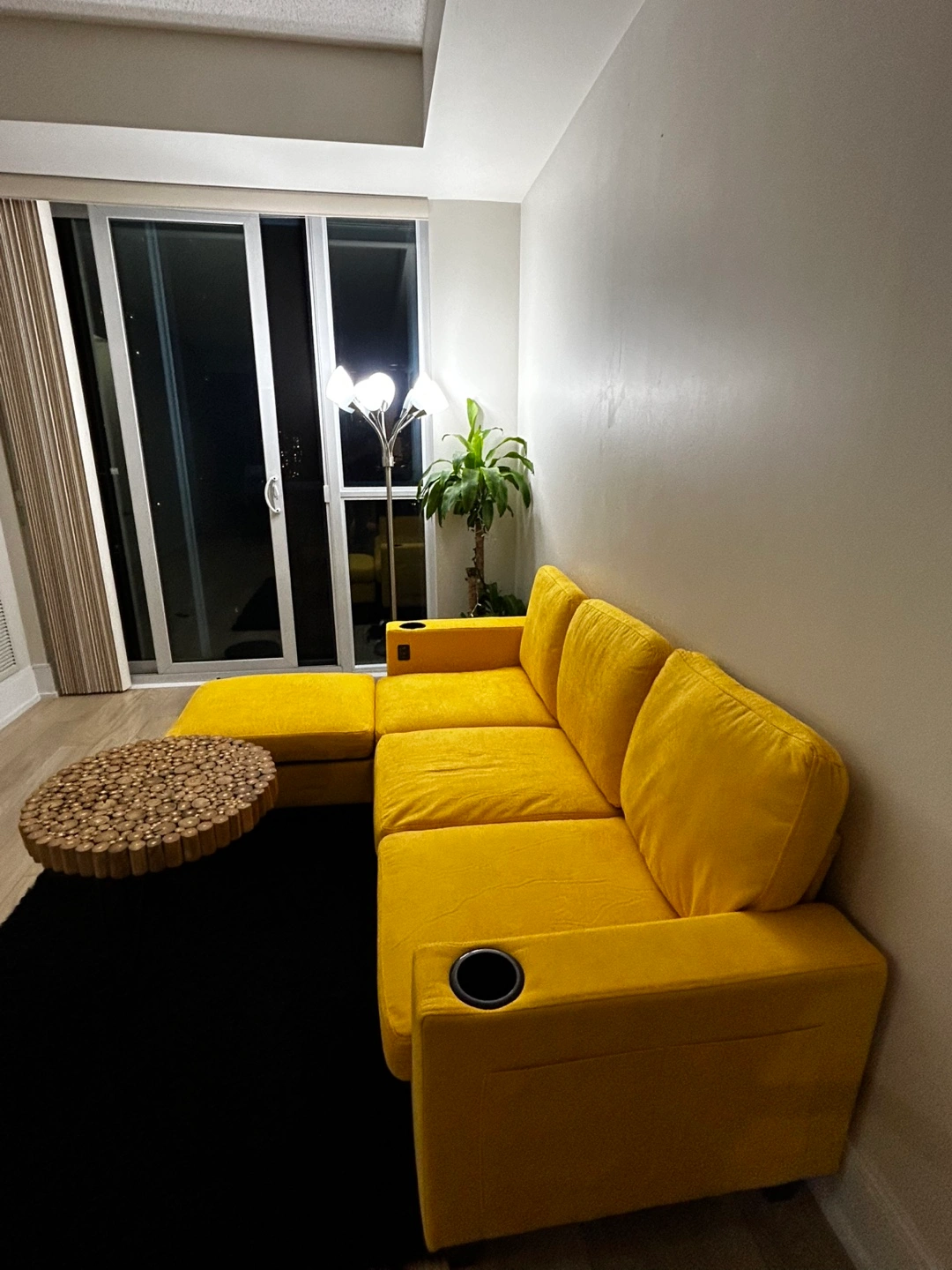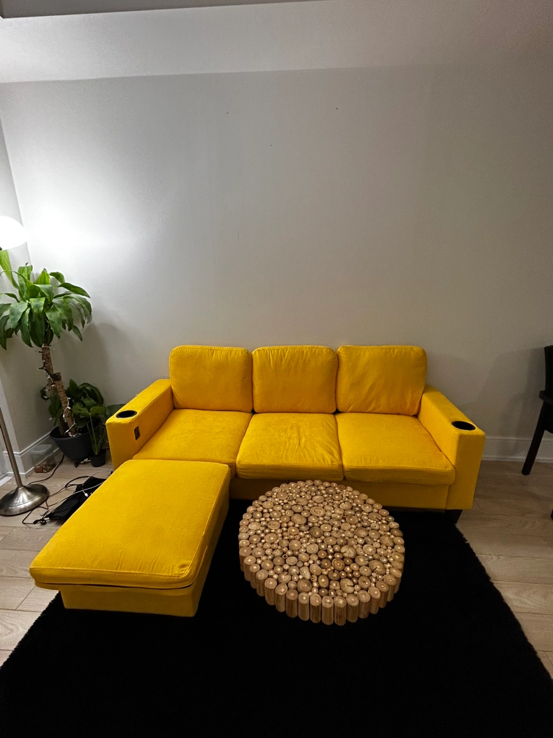 Excellent 3 Seater Sofa with Ottoman on Sale. Includes ottoman two Cup holders on both armrests and comes with 2 USB Charging inbuilt slots. New Like Condition. Purchased before 6 months and selling because of move out. Pet Free and Smoke free. Easy Assembly and Light weight.