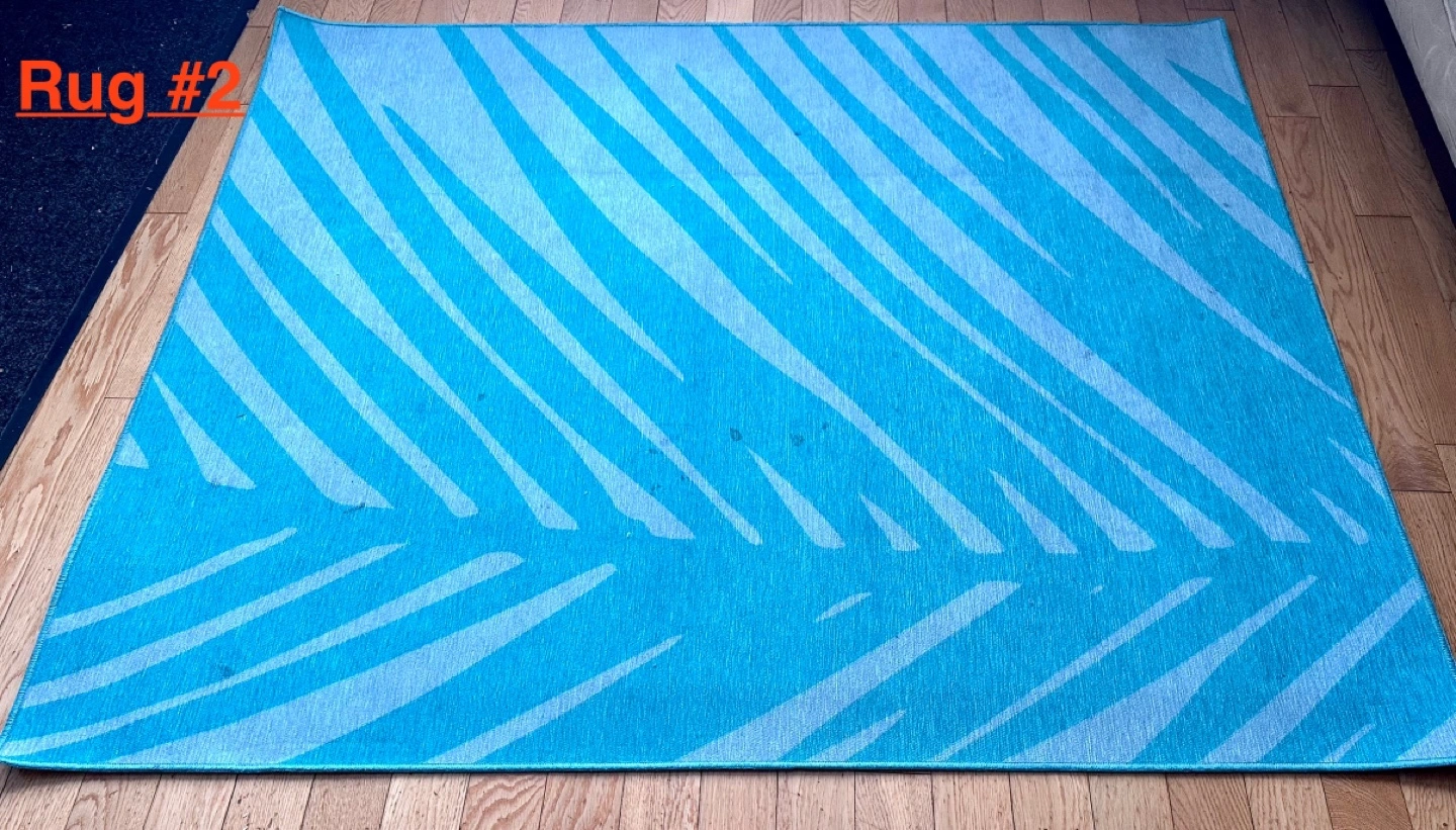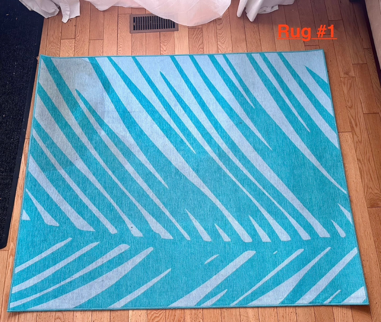 2 Rugs for Sale. Pre-loved IKEA GRACIÖS rug. Teal colour, palm leaf design. Machine washable. Approximately 4'4" x 5'3". Shows some wear but with a mild cleaning, it’ll be brand new.