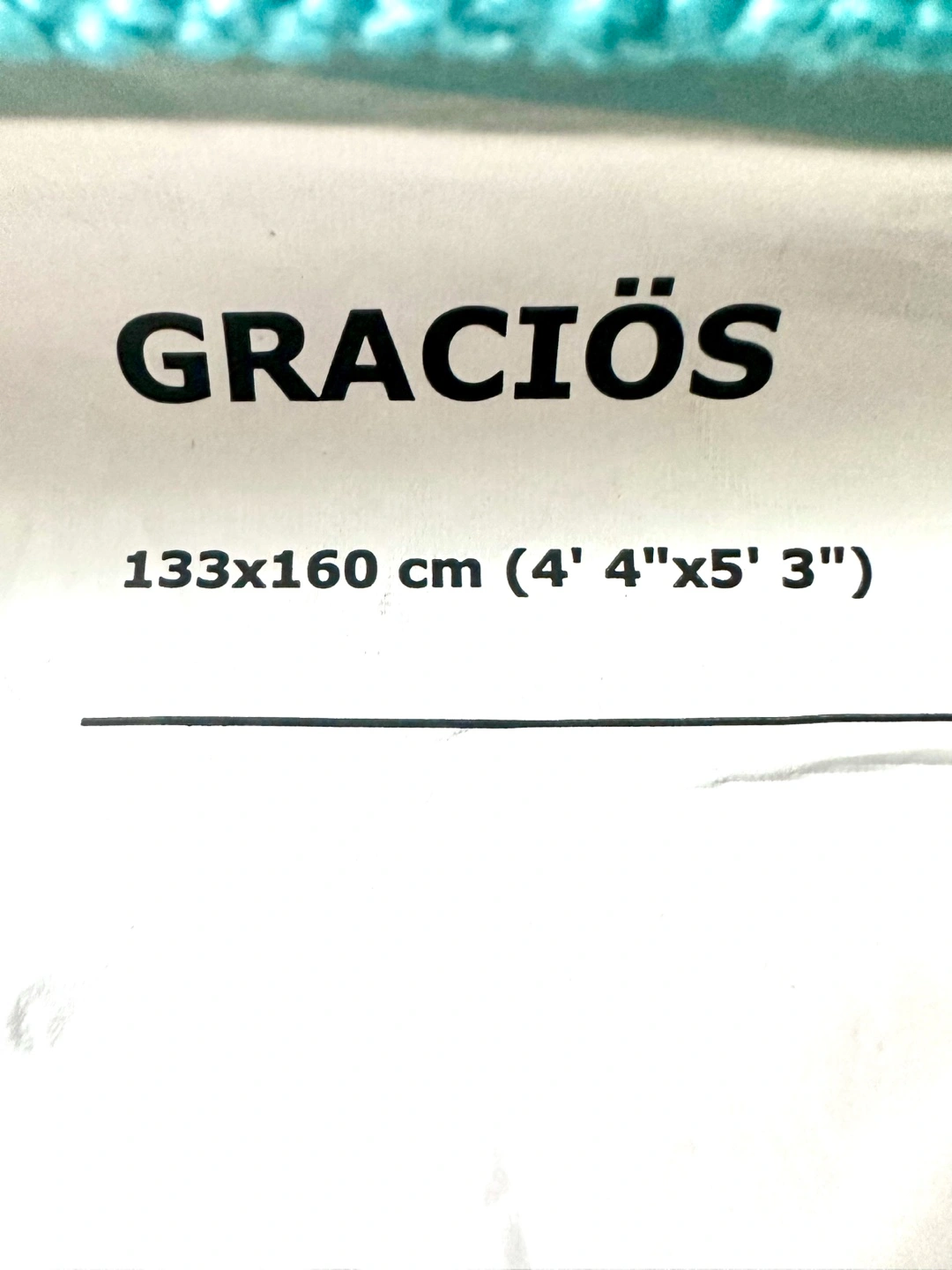 IKEA GRACIÖS Rug - Teal Palm Leaf Design - 4'4"x5'3"