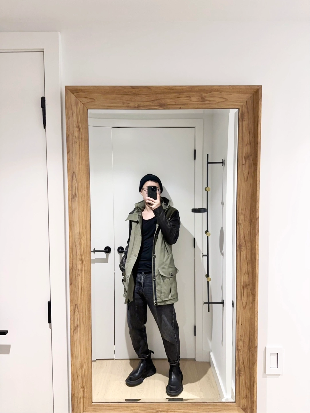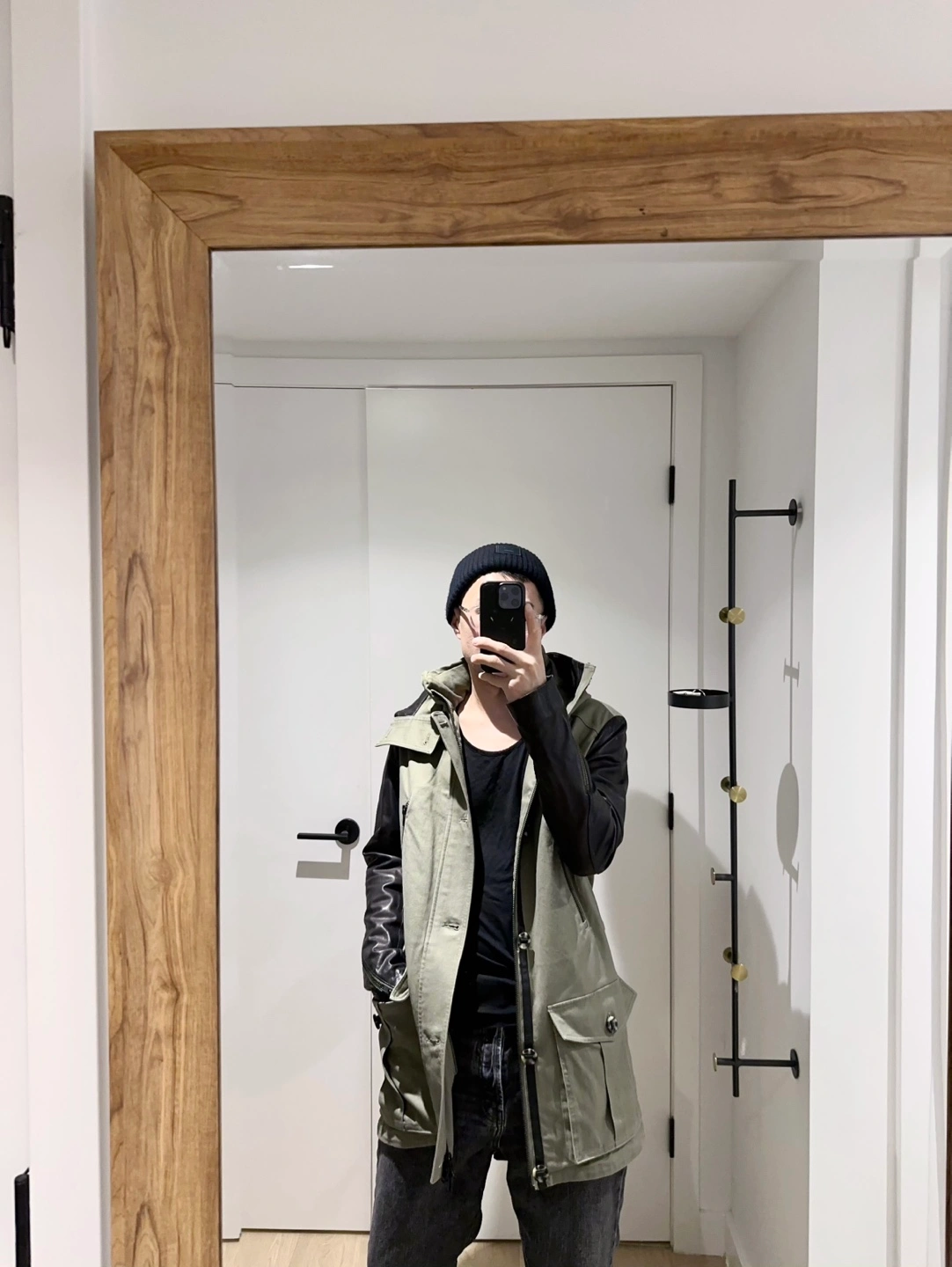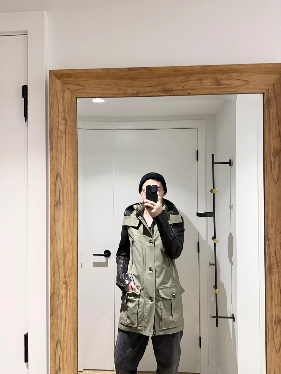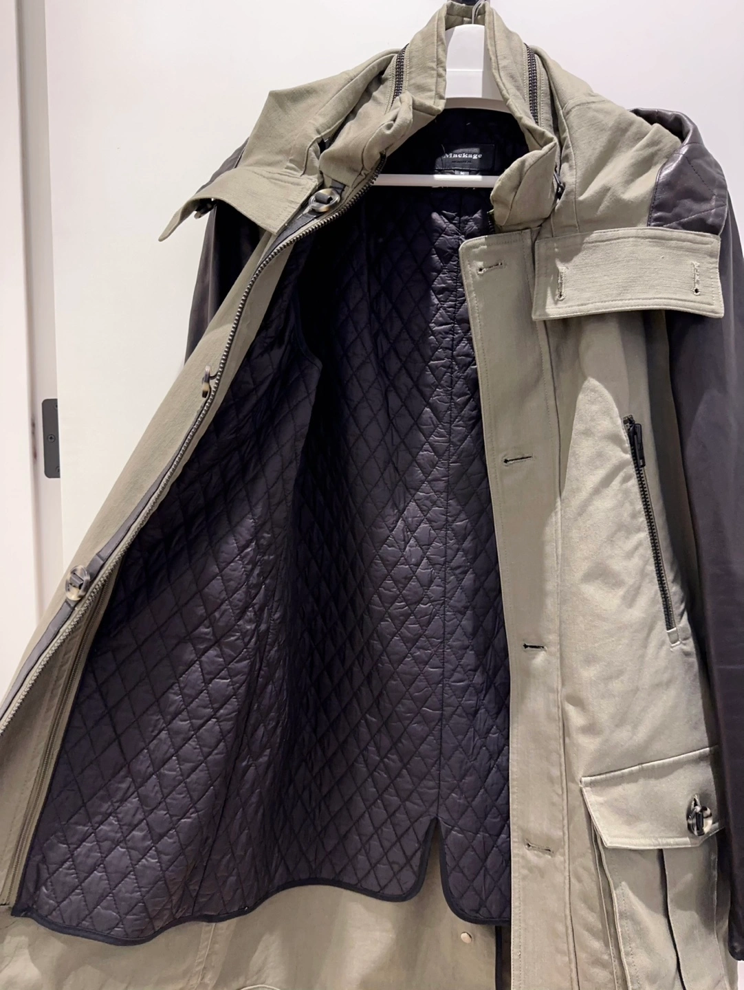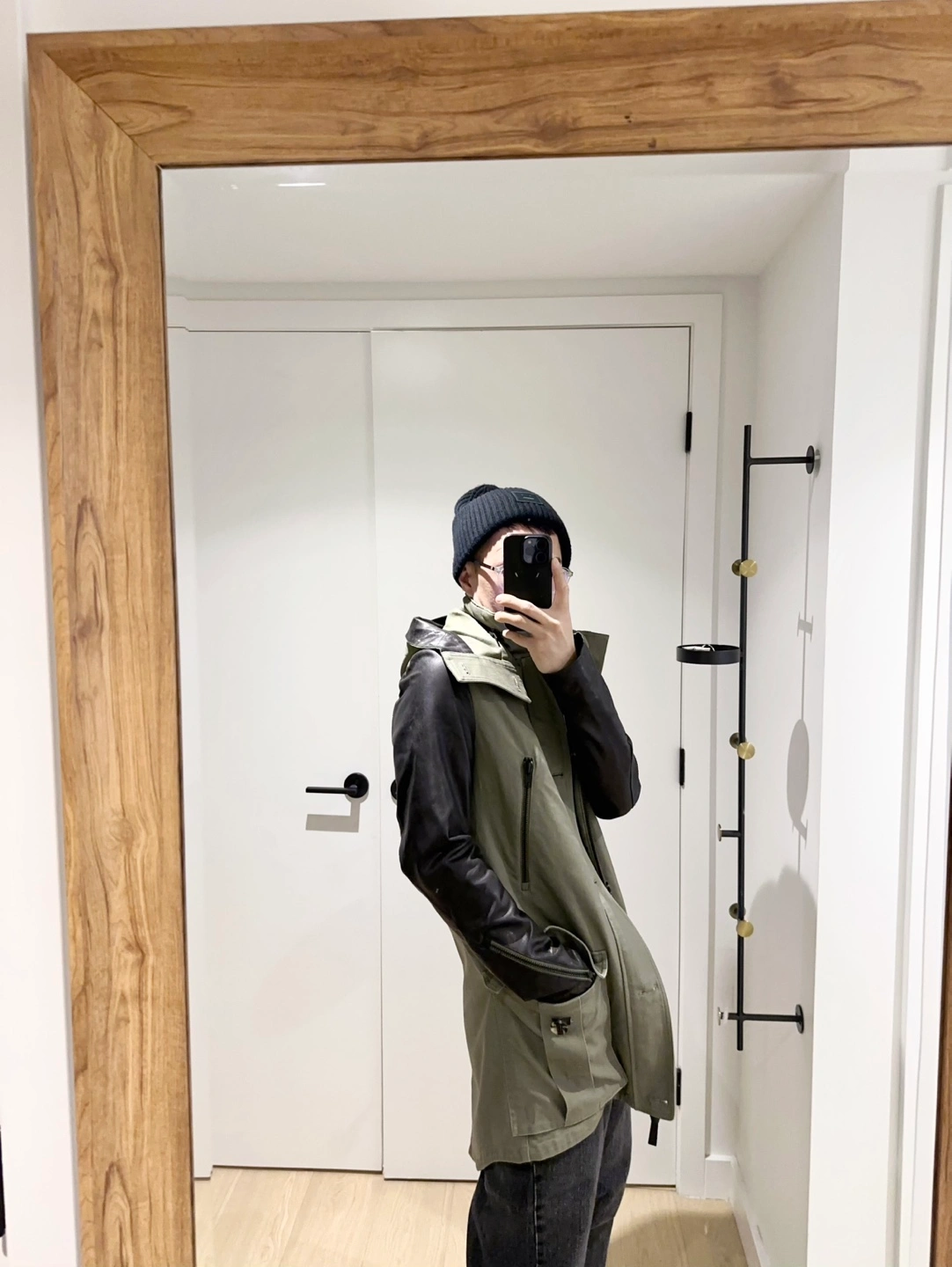 277Stylish Mackage parka. Features military green canvas body, black lamb leather sleeves, and a removable hood. Multiple pockets. Zipper and button closure. The lining is removable for extra warm, or suitable for spring/ fall. The coat is in excellent condition. I’m just clearing out my closet. I’m normally a size small or medium in most brands, depending on the fit.
