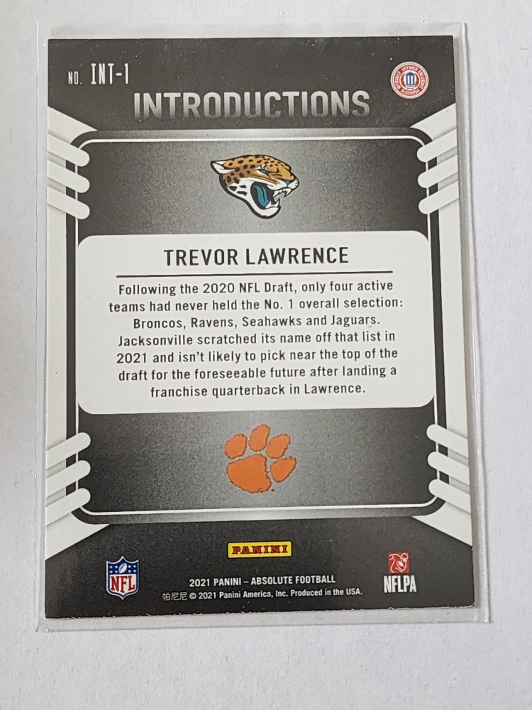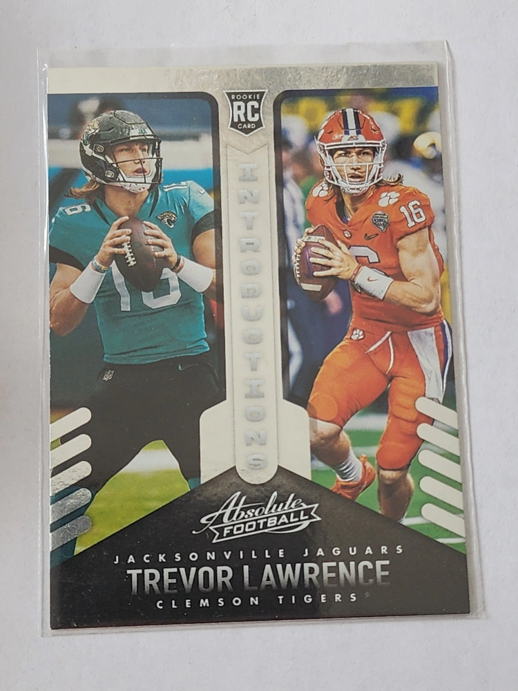 Buy & Sell2021 Panini Absolute Football Lawrence Rookie Card #INT-1 ๐2021 Panini Absolute Football Lawrence Rookie Card #INT-1 ๐$3Trevor Lawrence rookie card. Jacksonville Jaguars and Clemson Tigers. Rookie card. Numbered INT-1. Part of the Introductions subset.WHERE TO MEETMarkvilleView MapSELLERverifiedtoogoodMarkham Central E994 reviews0 chatsยท0 favoritesยท6 viewsSEND CHAT TO SELLERHi toogood! Iโm interested in your listing.Hi toogood! Iโm interested in your listing.Get the Karrot app to chatSign In to chat