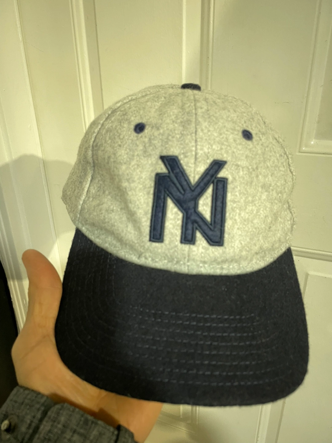 Grey and navy baseball cap. Features New York Black Yankees logo. Size L. 50% wool, 50% polyester. Made in China. Rare and Vintage.