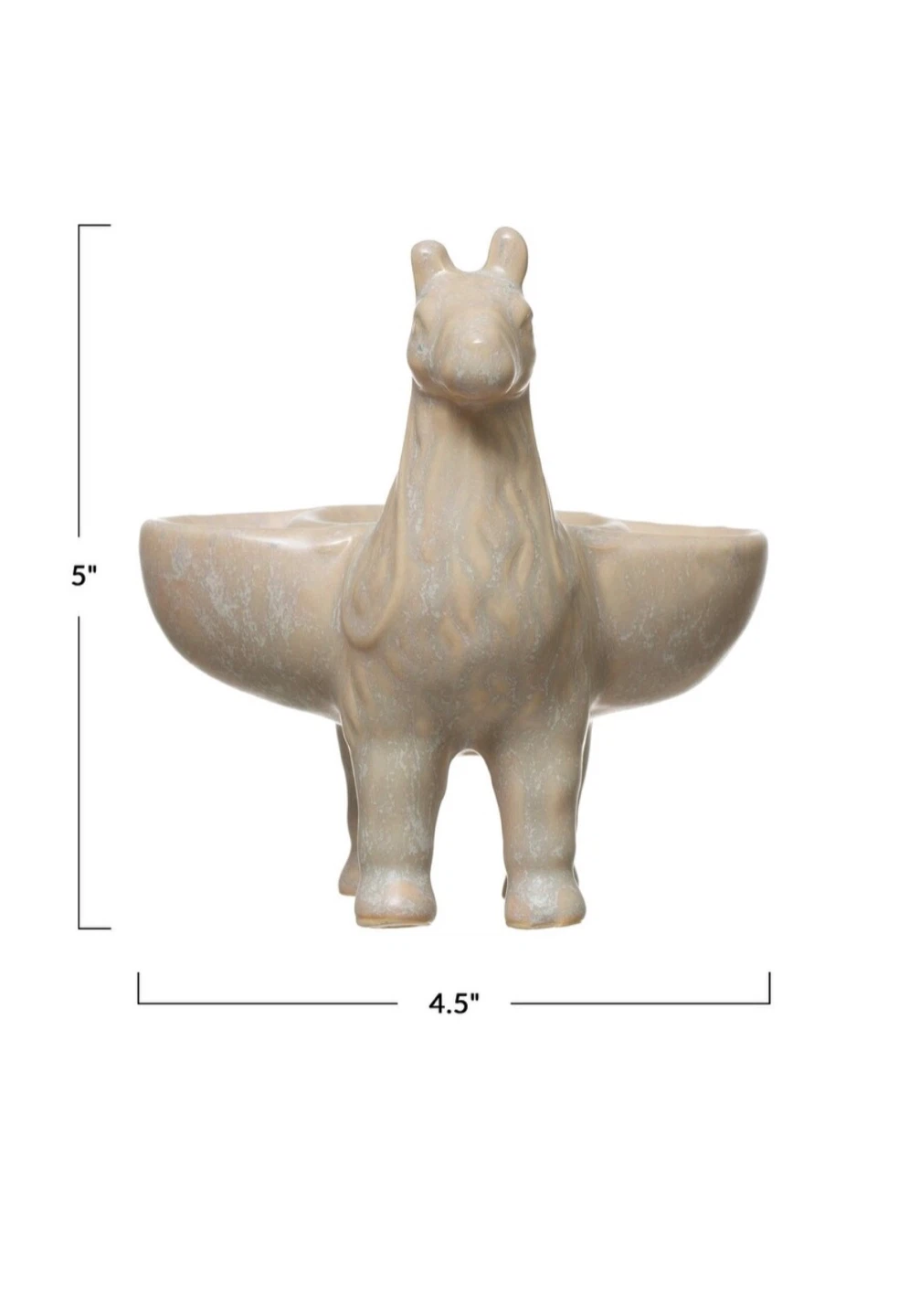 This adorable llama statue from Creative Co-Op Stoneware is perfect for keeping on dressers or nightstands to hold jewelry. Made out of stoneware sculpted In the shape of a cute llama. Brand new.