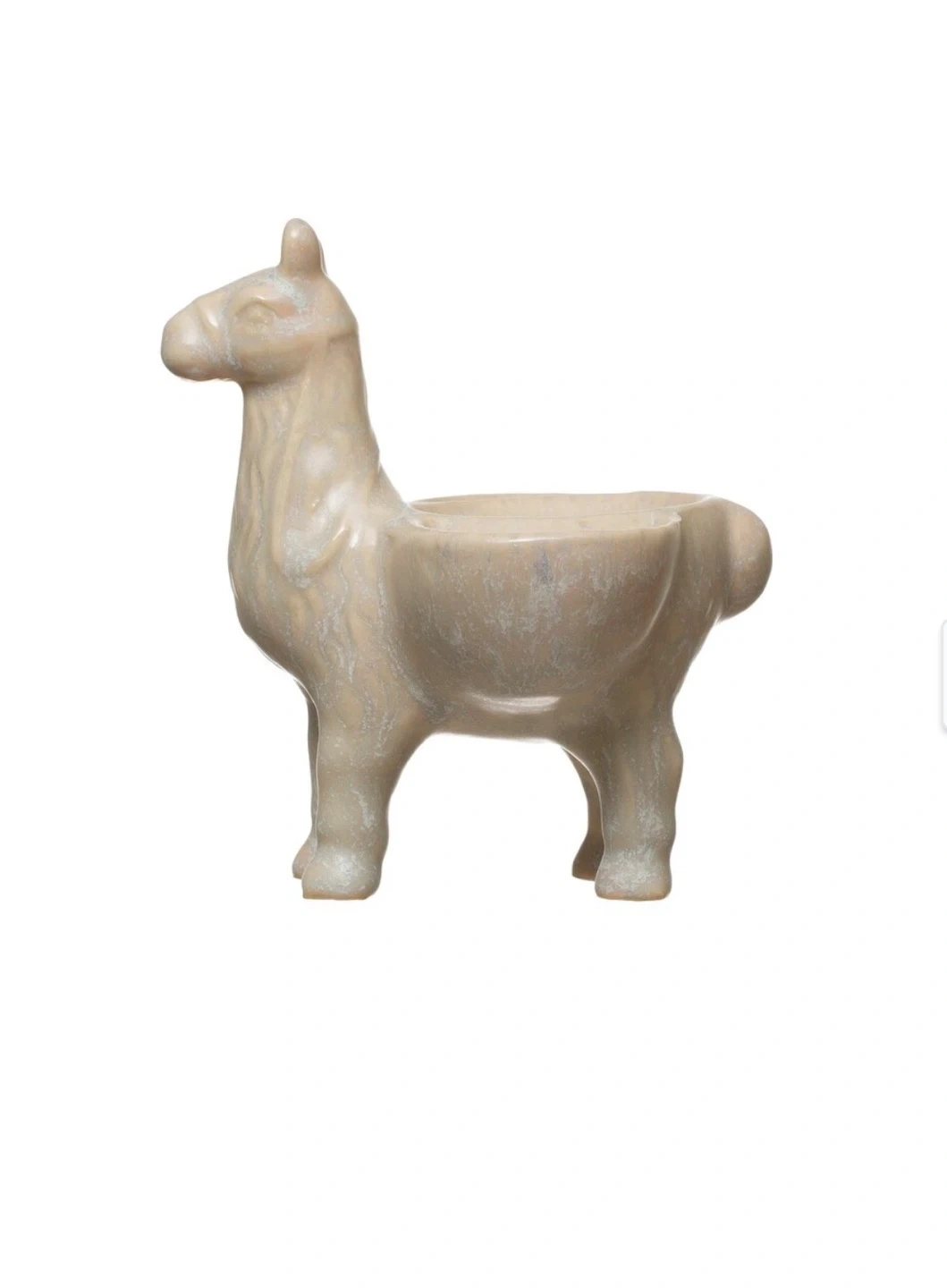 This adorable llama statue from Creative Co-Op Stoneware is perfect for keeping on dressers or nightstands to hold jewelry. Made out of stoneware sculpted In the shape of a cute llama. Brand new.