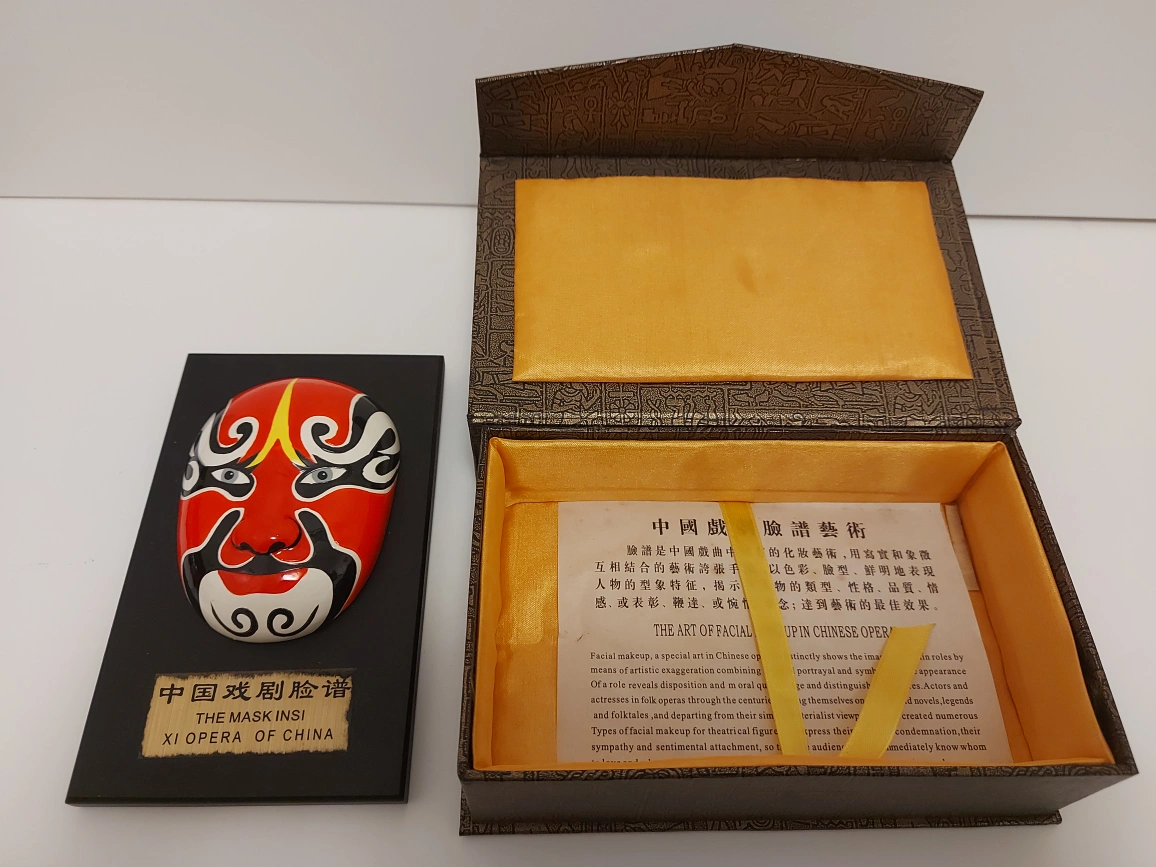 Collectible framed Peking Opera mask. Comes in a National Crafts box with informational insert. Red, black and yellow colours. Measures approximately 6 inches tall. Happy to gift it to someone who appreciates Chinese Opera.
