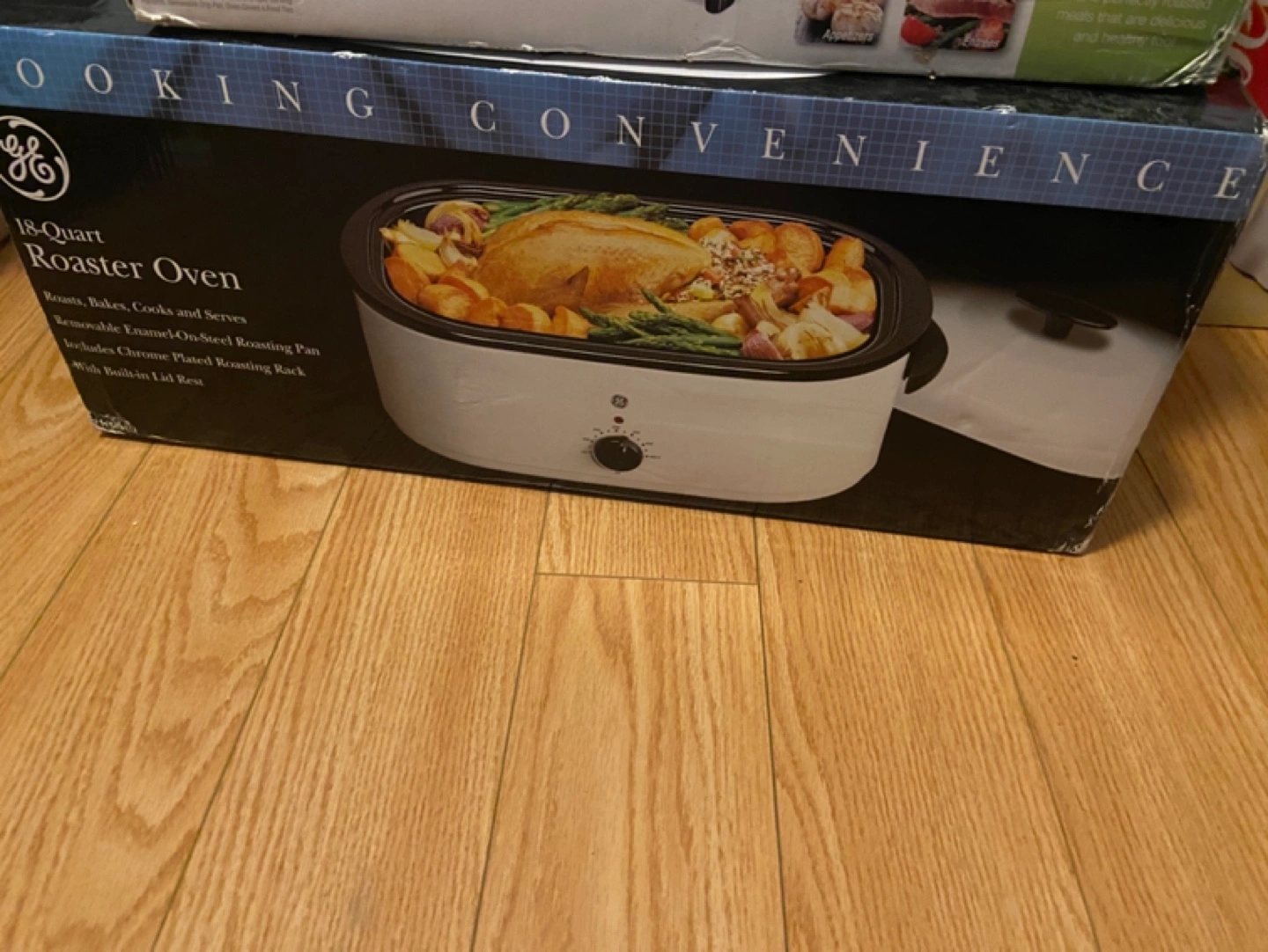 74Roasts, bakes, cooks, and serves. Removable enamel-on-steel roasting pan. Includes chrome-plated roasting rack. Built-in lid rest. $75 firm