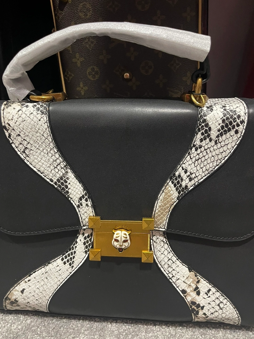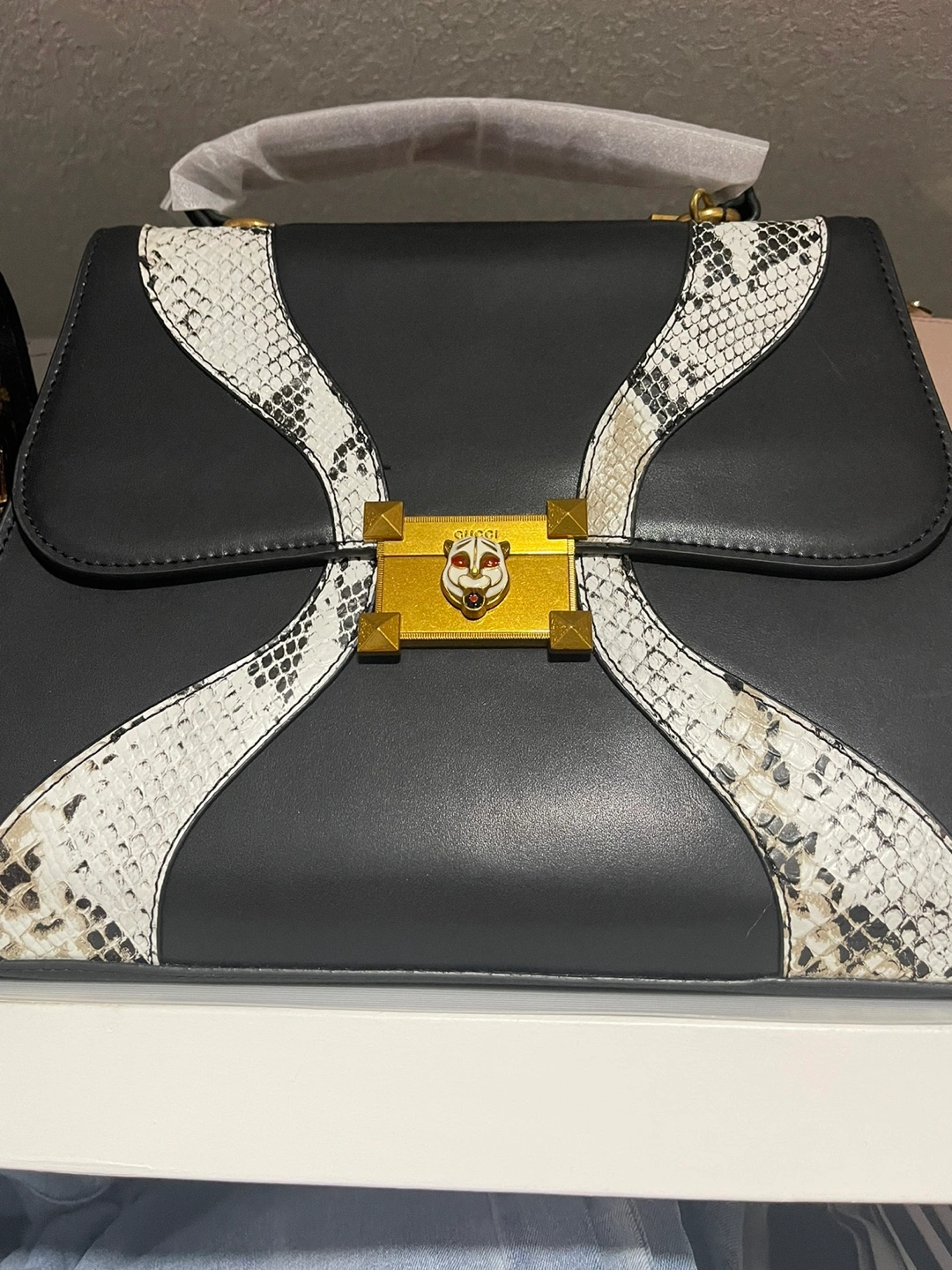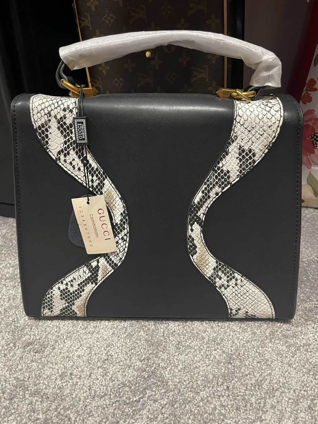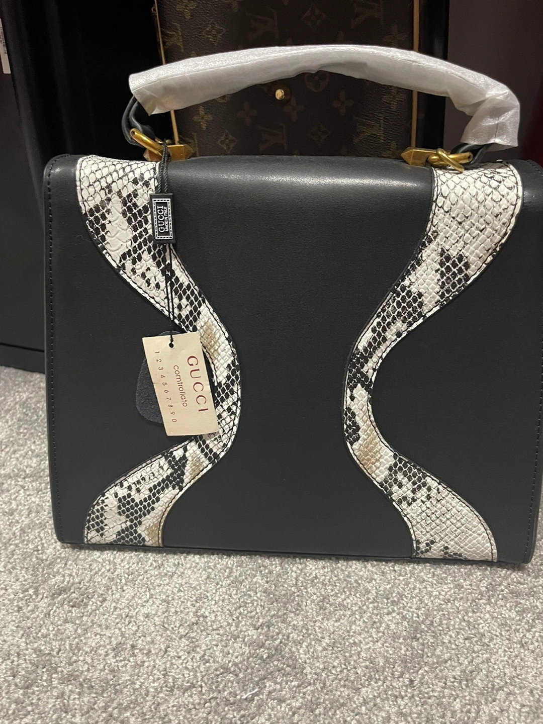 Gucci Black and White Snakeskin Handbag