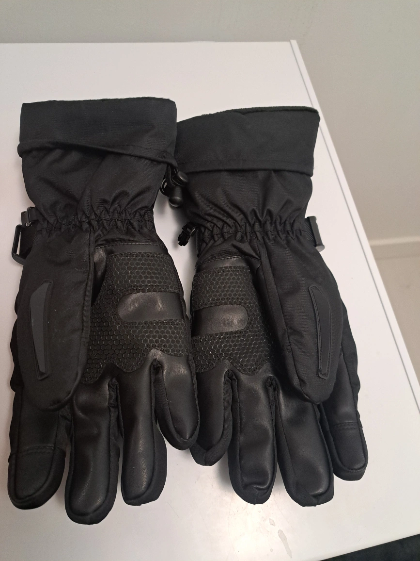 Men's black rechargeable heated gloves. Three heat settings. Includes battery pack. Size XL . Good for cold weather activities. $90 brand new.Pick up only please thank you ππ