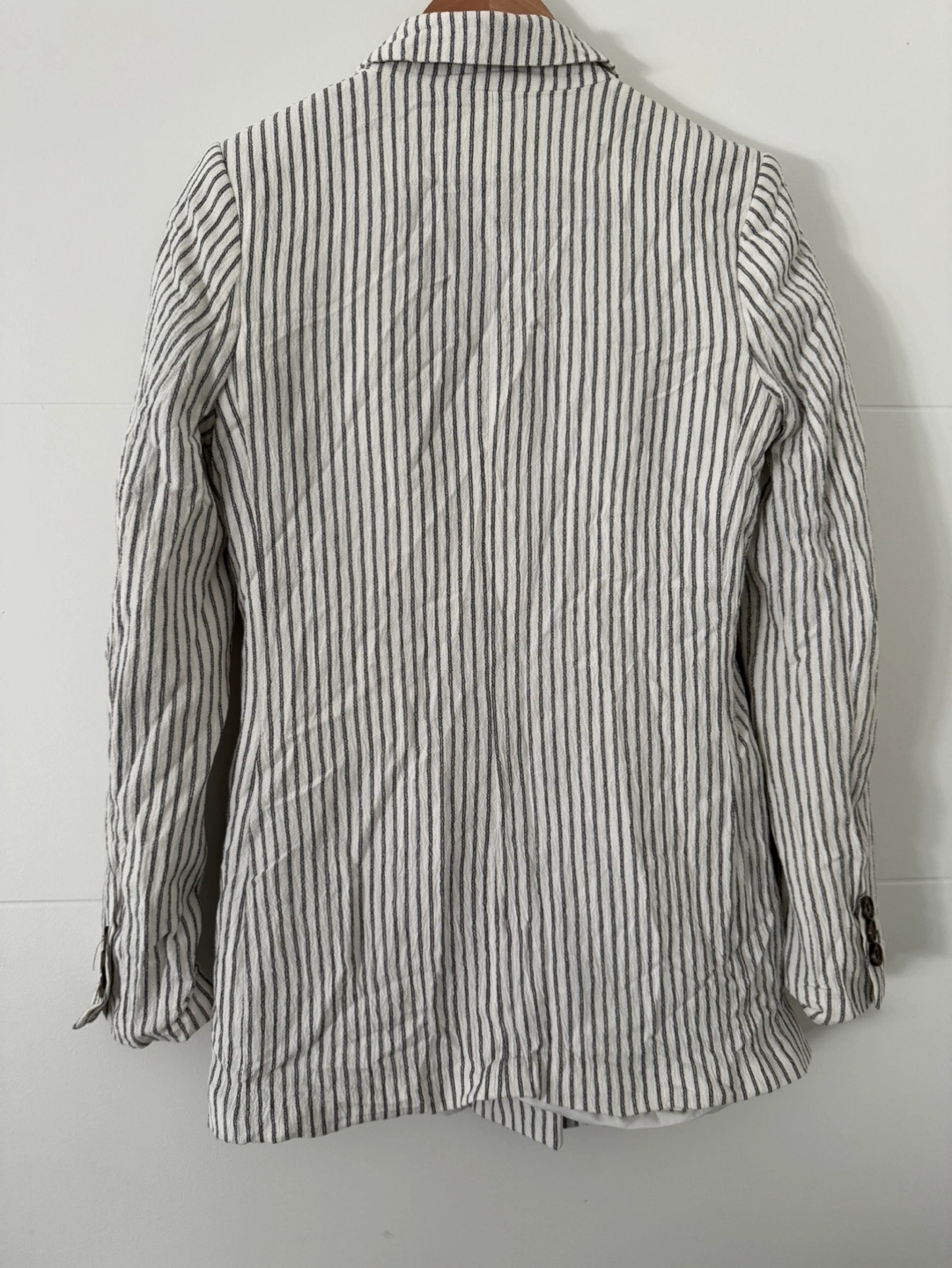 1000+LIKE NEW H&M striped Linen Blend Cotton Blazer Jacket size 2/small Great quality! Flattering lightweight cotton+linen blazer, perfect for spring/summer. Single breast, satin lining inside, minor shoulder padding. Never really wore it, just been sitting in my closet. Price is firm, cash only please. Pickup downtown Toronto/Jarvis & Gerrard/Yonge & Dundas or we can arrange to meet along TTC line 1.