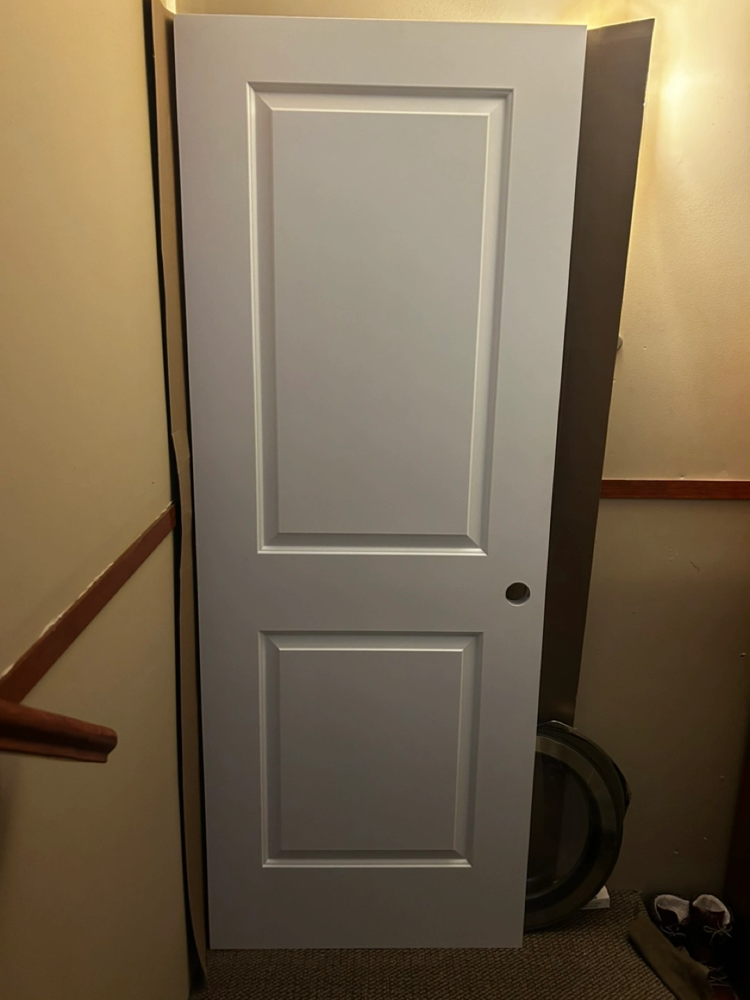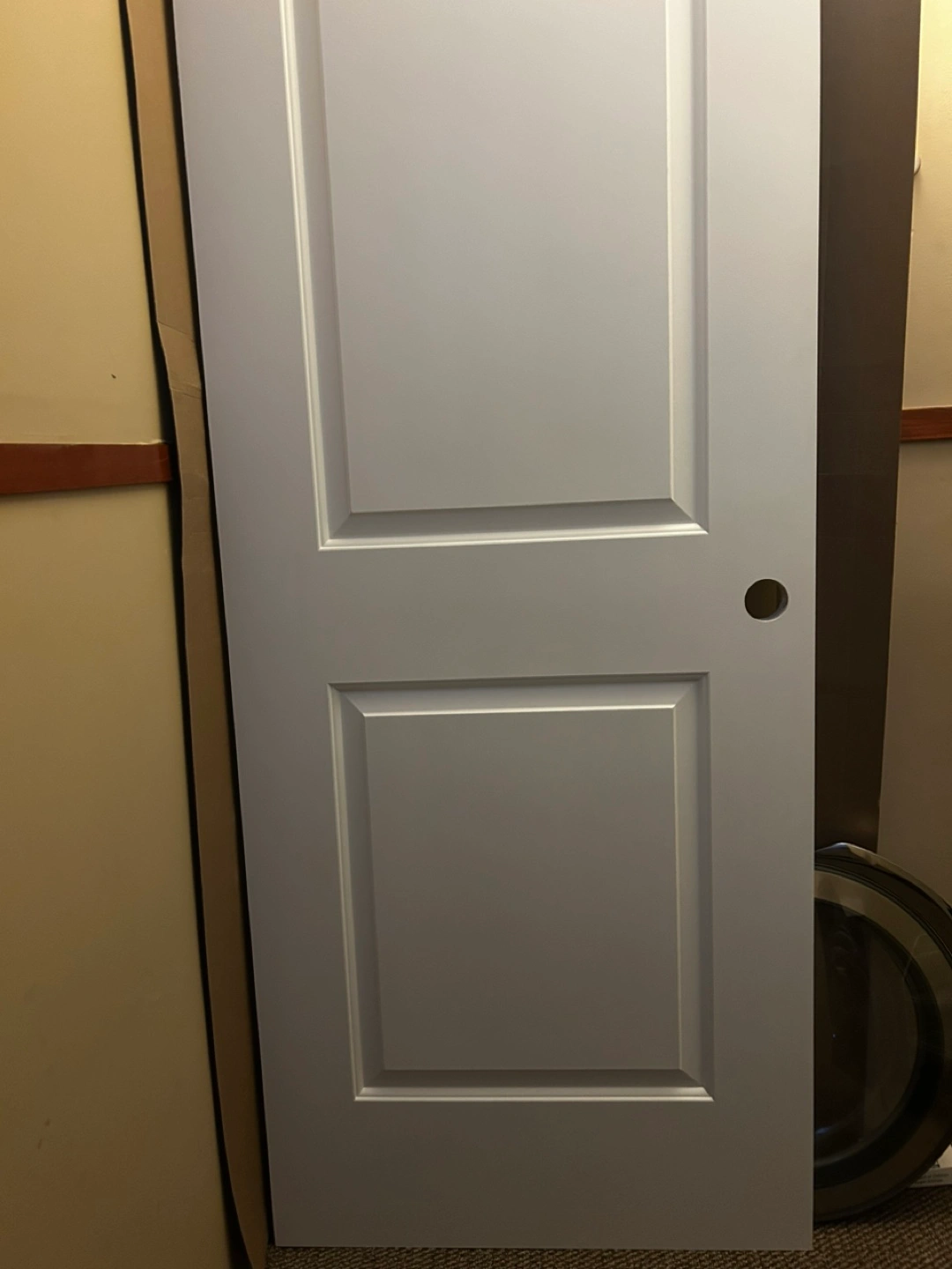 White interior NEW DOOR, Two-panel design. Ready for installation. Left handed.