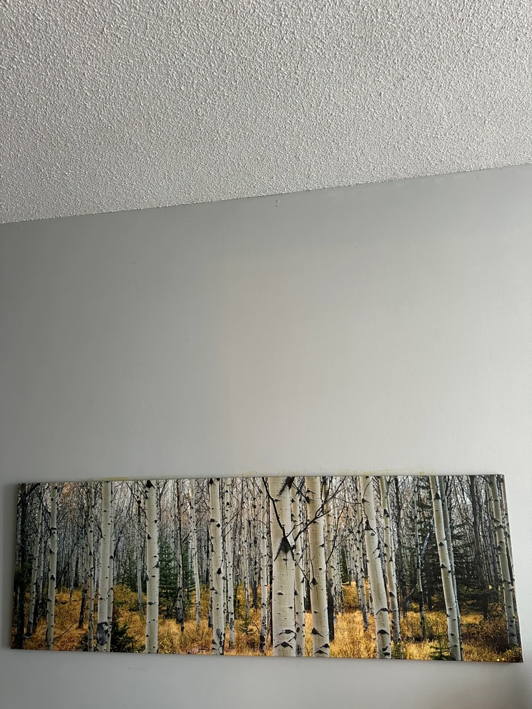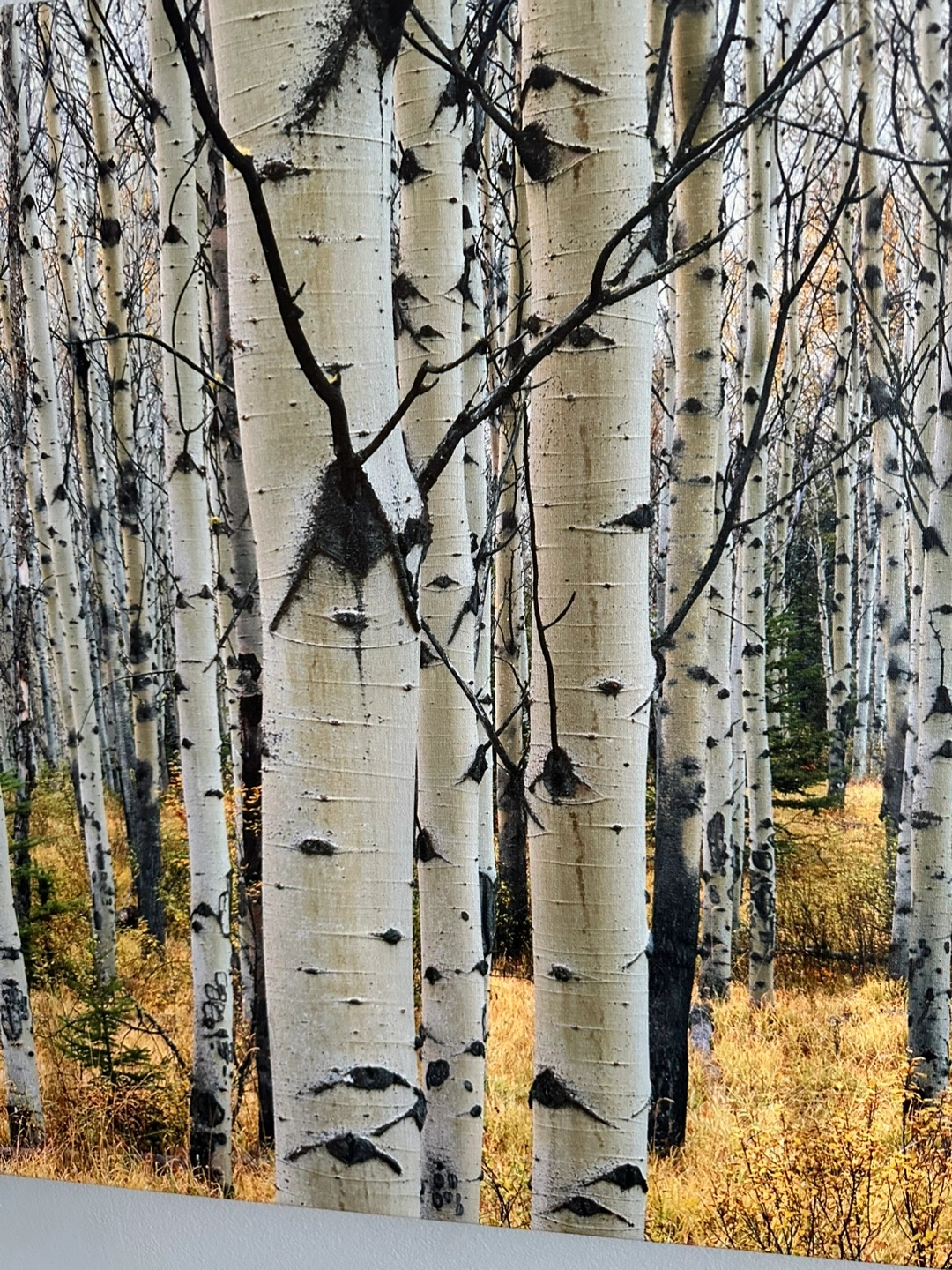 Long horizontal canvas print. Features a photograph of aspen trees. Great for adding nature to your home decor. Looks great above a bed or couch.