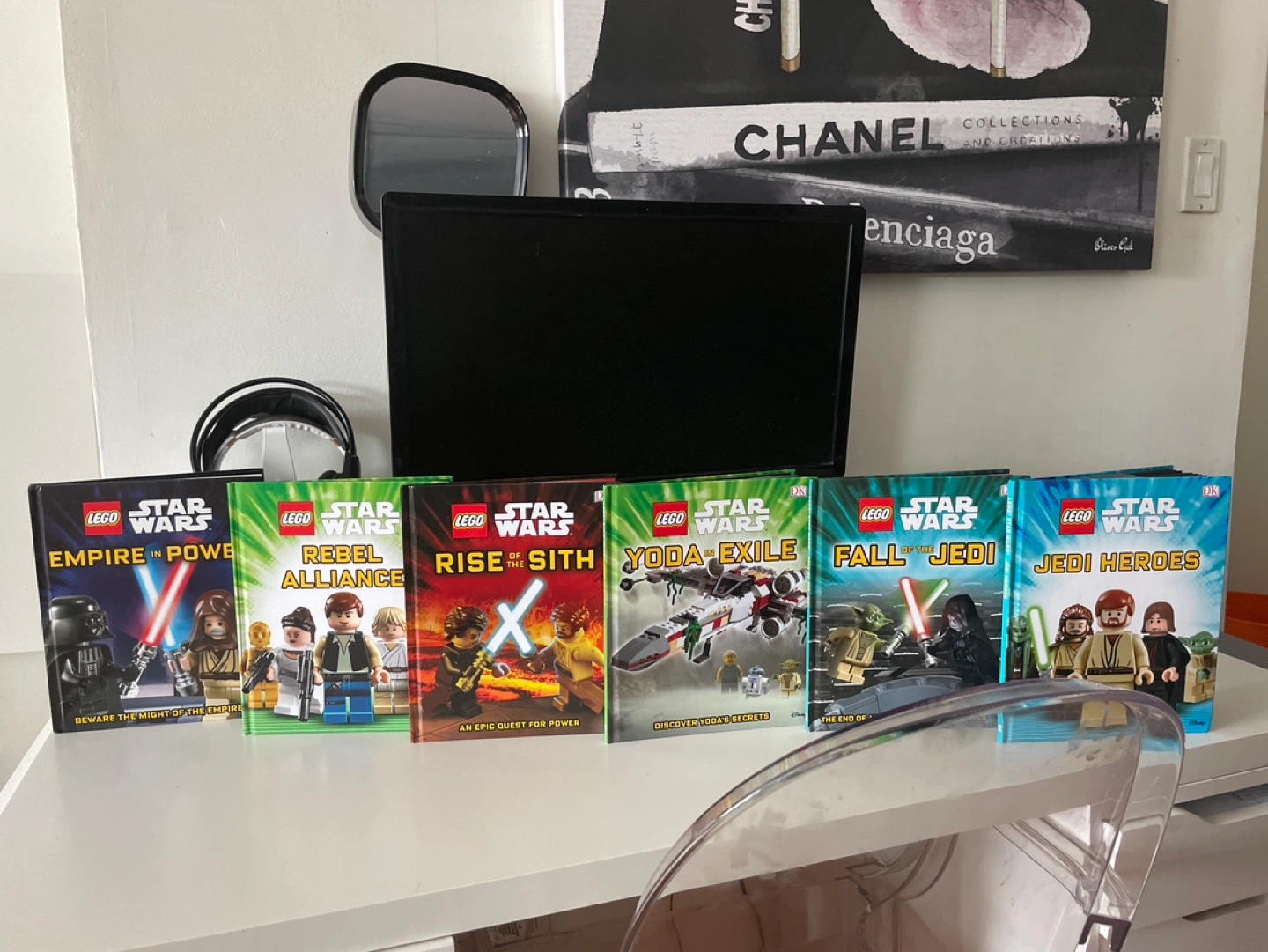 Collection of seven LEGO Star Wars books. Titles include Empire in Power, Rebel Alliance, Rise of the Sith, Yoda in Exile, Fall of the Jedi, Defenders of the Republic and Jedi Heroes. Great for young LEGO and Star Wars fans.