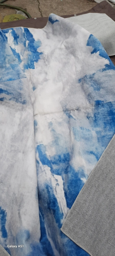 Beautiful large area rug. Features abstract blue and grey watercolor design. Soft and comfortable. Machine washable.5x7
