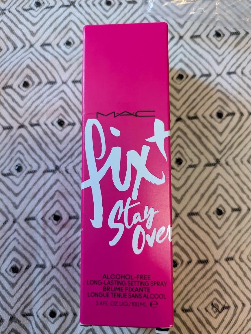 New 100ml bottle of MAC Fix+ Stay Over setting spray. Alcohol-free formula. Long-lasting.